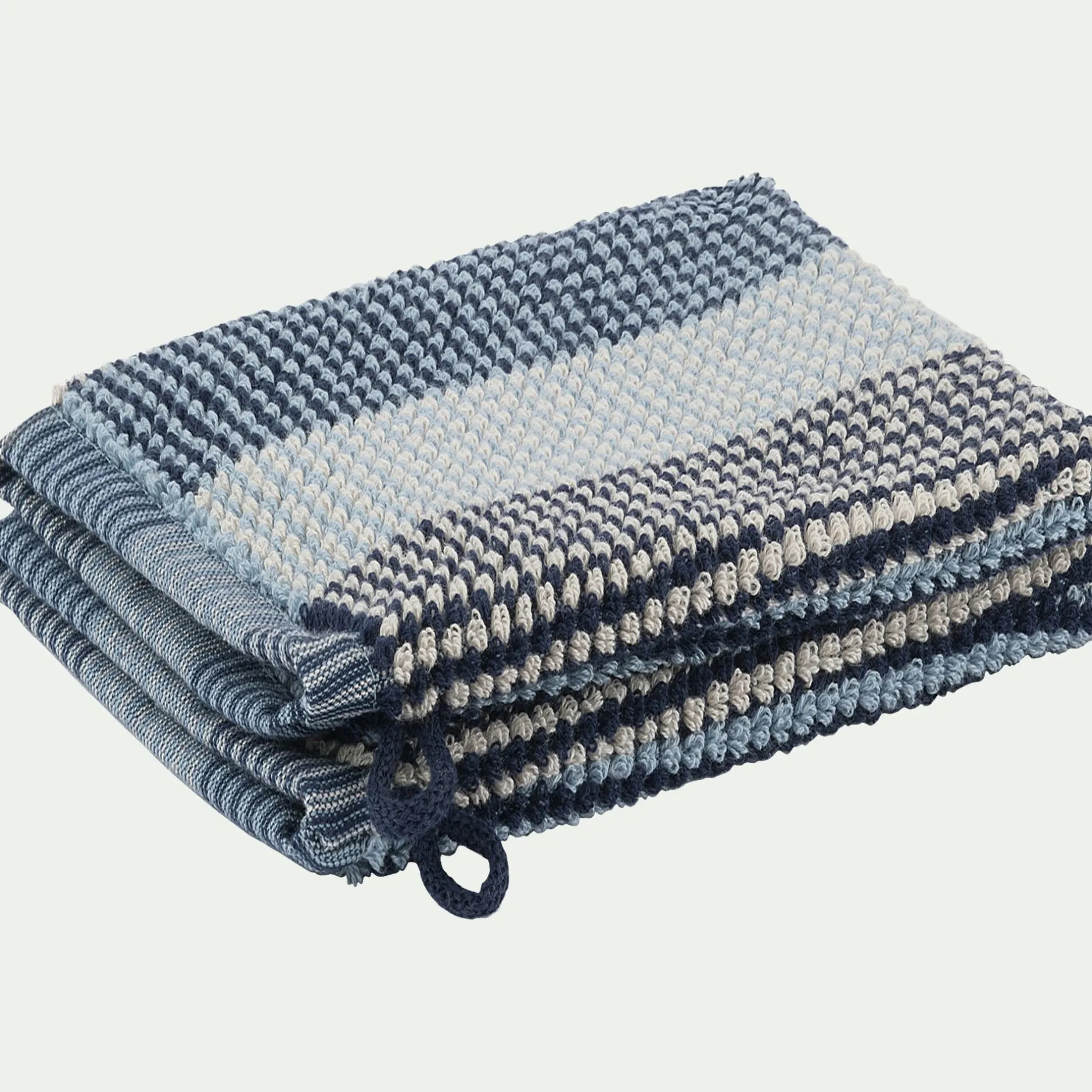 Résolument élégante et rétro, la collection de linge de toilette Hugo s’inspire des codes masculins du Paris des années 1960. Ce lot de deux gants de toilette en coton, ici en bleu, possède un grammage épais, et permet une excellente absorption de l’eau. Son fil retors et sa composition en bouclette de coton lui apporte une douceur incomparable au toucher. Le linge de toilette Hugo résistera au fil du temps et des lavages grâce à sa grande qualité de tissage.