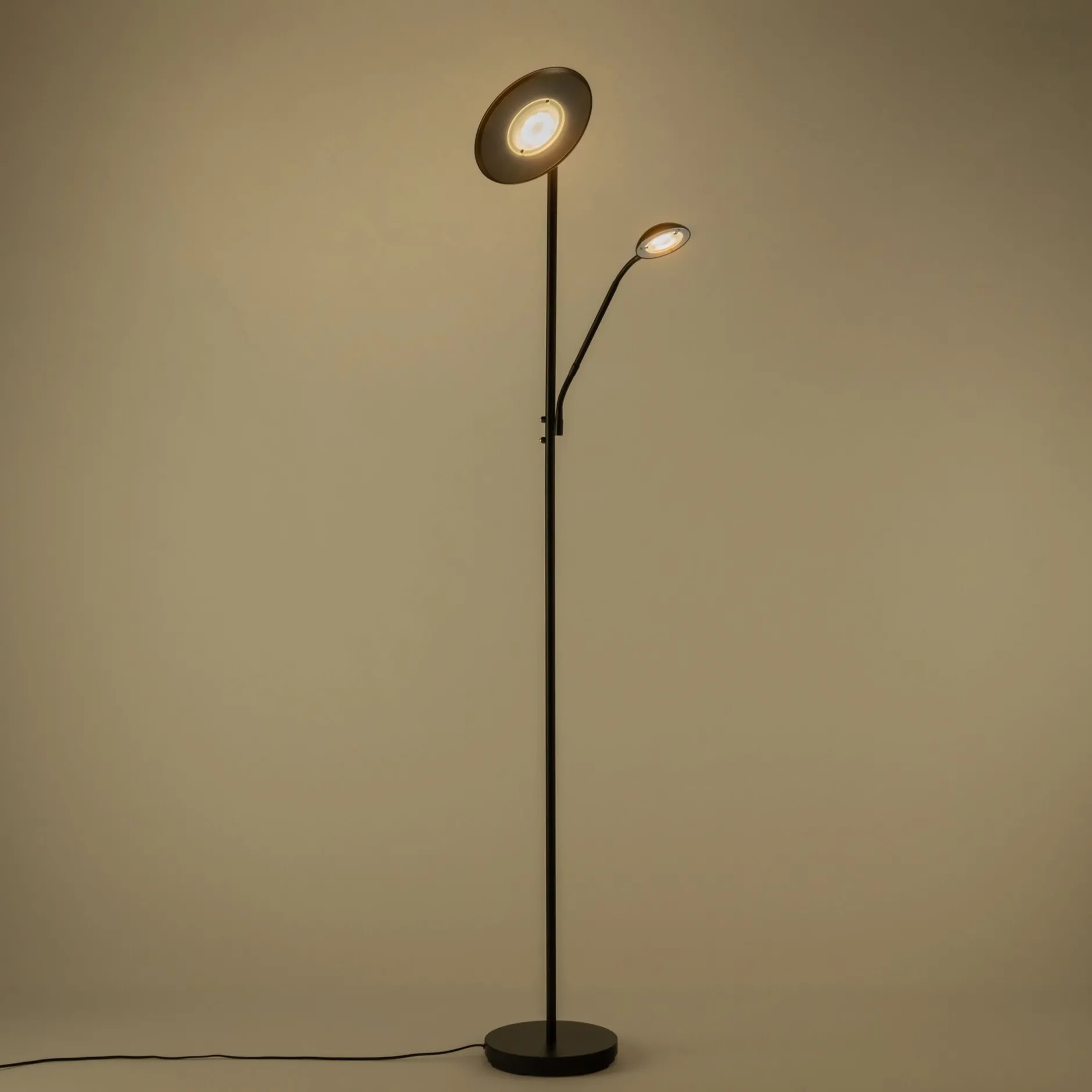 Ce lampadaire fin et linéaire trouve idéalement sa place dans votre pièce à vivre pour vous offrir une source lumineuse supplémentaire et élégante. Avec son piétement en acier noir tout en finesse, il donne de la hauteur à votre éclairage qui est d’autant plus mis en avantage car il est inclinable verticalement. Il est muni d’un variateur et vous pouvez ainsi jouer sur l’intensité afin d’adapter la luminosité selon l’ambiance que vous souhaitez créer et selon les moments de la journée. Il possède également une petite lampe à LED, idéale pour aménager un coin lecture au-dessus du canapé.