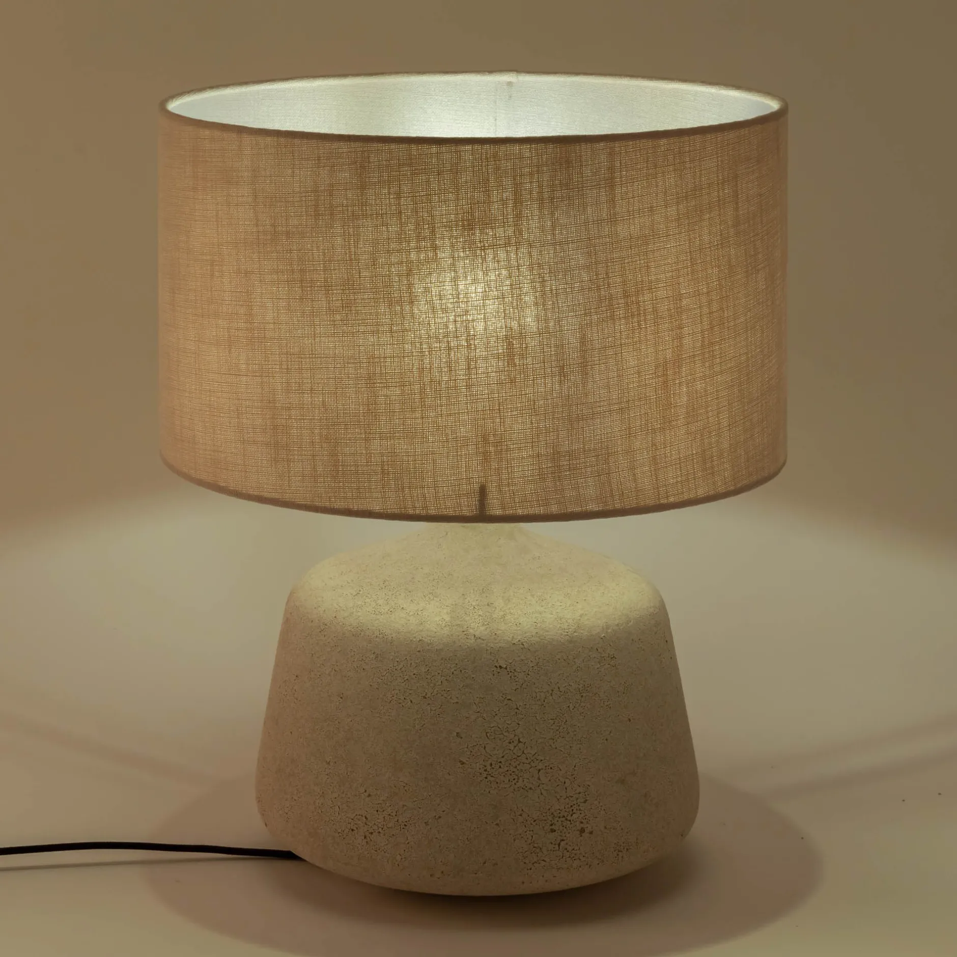 Cette lampe à poser électrifiée marie le brut et le doux avec un charme unique. Son pied en céramique présente un effet craquelé évoquant la texture de la pierre, apportant une touche organique et authentique. L’abat-jour en coton beige complète l’ensemble avec délicatesse, adoucissant la lumière pour une ambiance chaleureuse. Polyvalente, cette lampe à poser s’intègre avec élégance dans tous les styles d’intérieur, du contemporain au rustique.