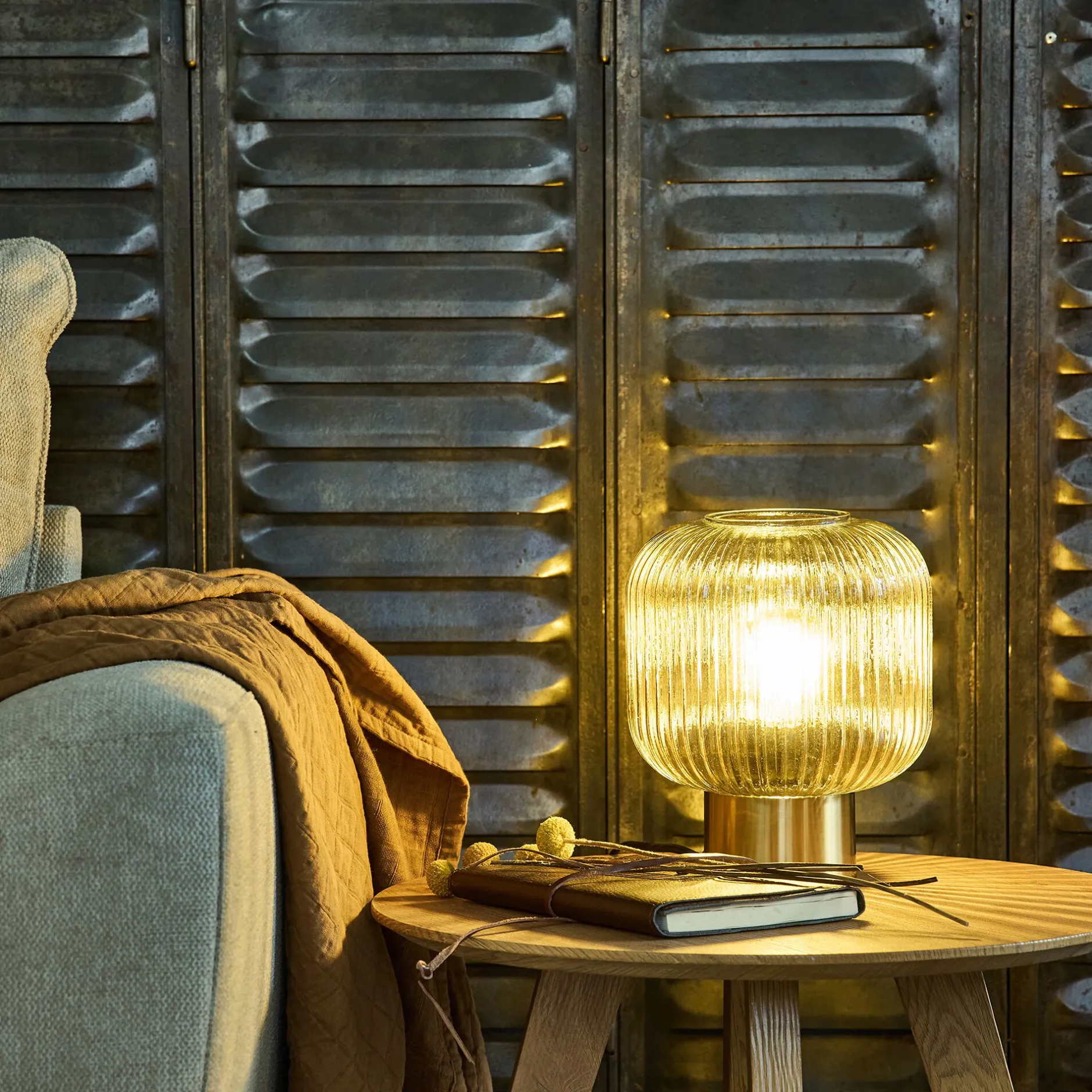 Vous souhaitez apporter une touche rétro à votre intérieur ? La lampe à poser Maloto est sans doute ce qu’il vous faut. Sa sphère en verre ambré est fabriquée à partir de matériaux de haute qualité et repose sur une élégante base en métal doré. Que ce soit dans le salon, la salle à manger ou sur une armoire, Maloto s’intègre parfaitement à tous les espaces. Elle peut même faire office de veilleuse. Le cordon en tissu est doté d’un interrupteur intégré pour allumer et éteindre la lampe facilement.