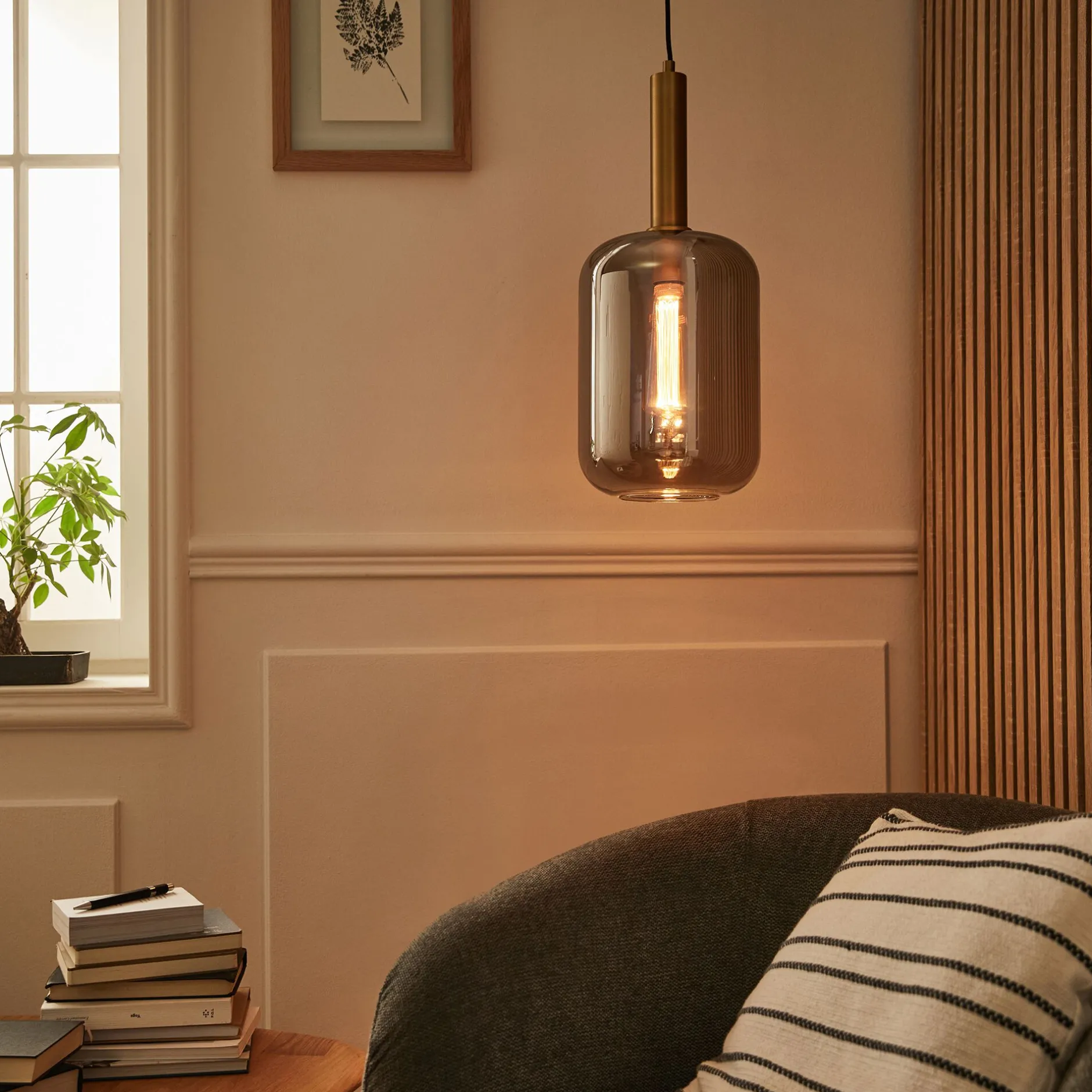 Lustre De Salle À Manger|Lustre*alinea Suspension en laiton et globe en verre fumé D22cm – Doré