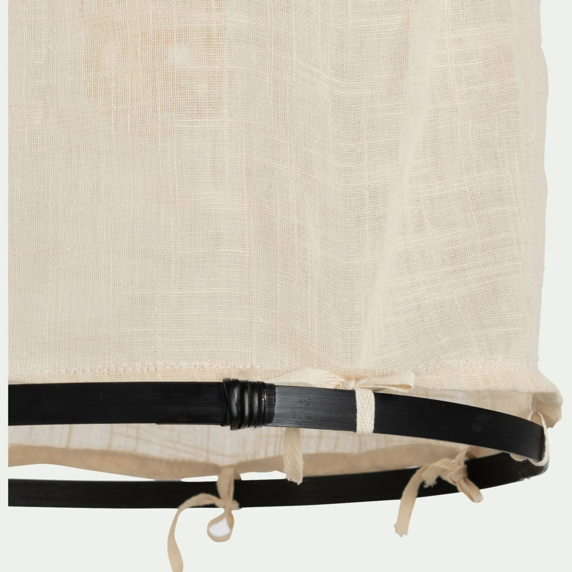 Suspension en voile de coton blanc, structure en bambou noir et fer.