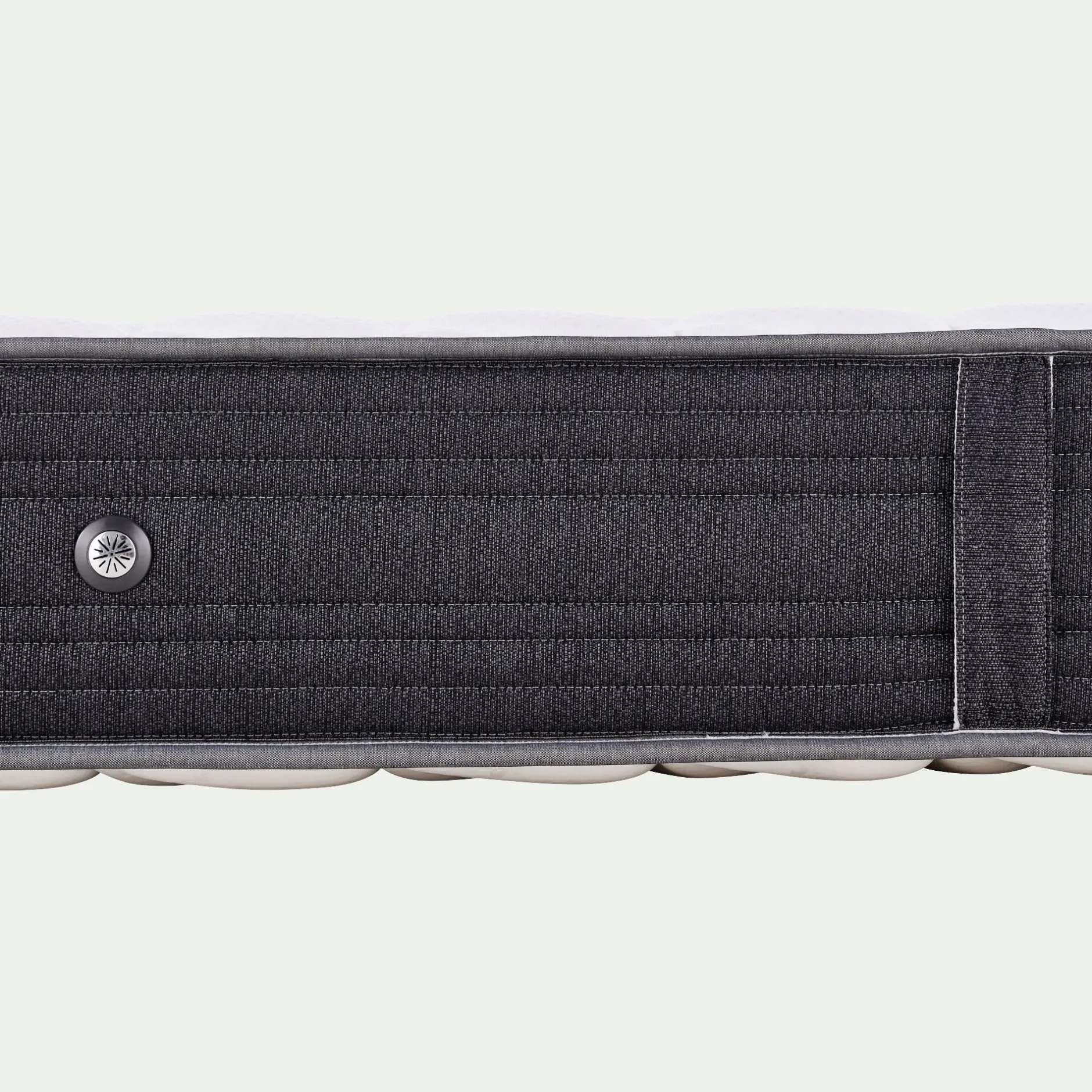 Ame : 616 ressorts ensachés renforcés Périplus hauts de 18cm en 140x200cm, sans carénage mousse, suspension garnie de complexe thermolié sur les 2 faces.