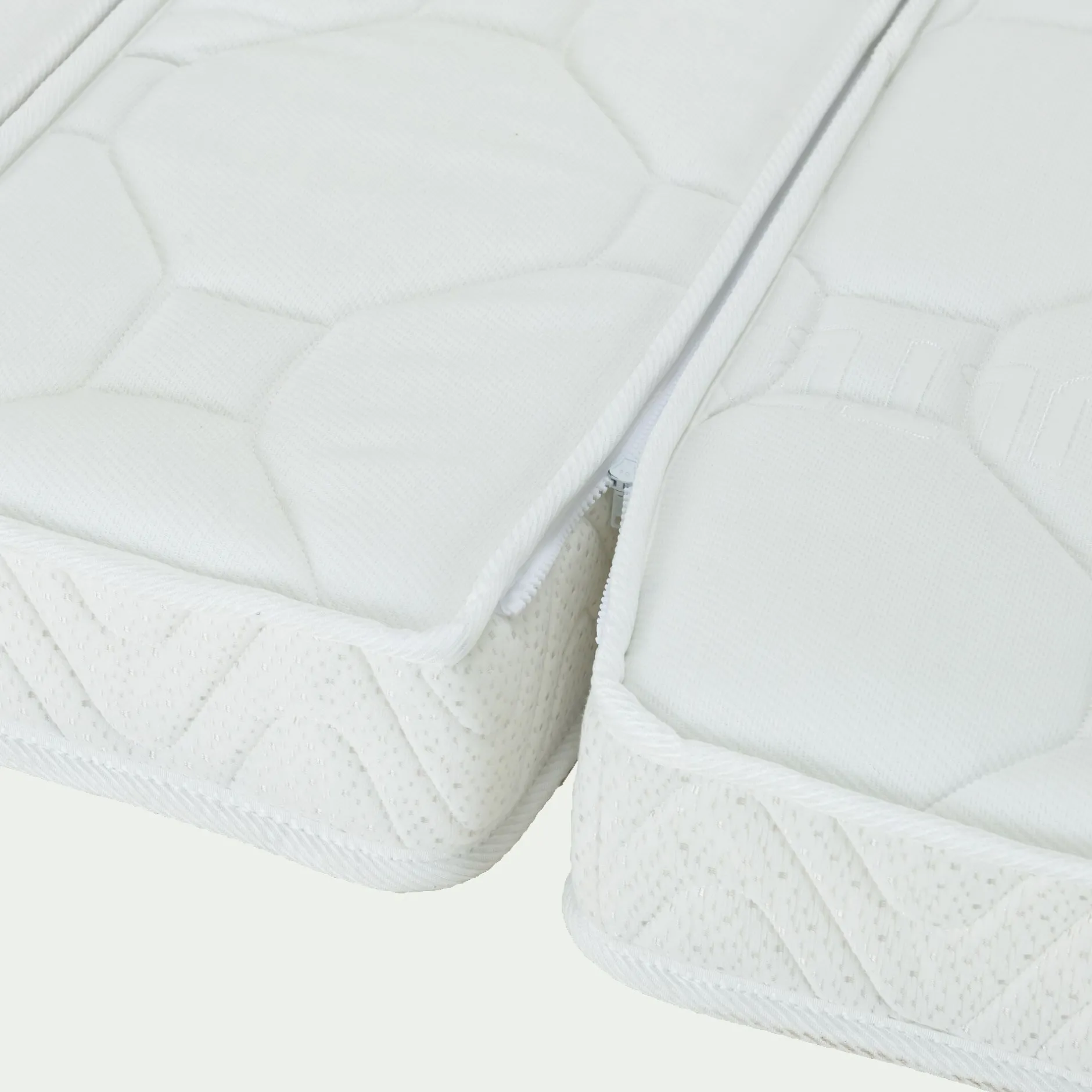 Ce matelas pour lit évolutif en mousse BULTEX primo 30kg/m3 accompagnera votre enfant pour un sommeil apaisant propice à de doux rêves. Très confortable, il épouse parfaitement sa morphologie et propose un équilibre idéal malgré les mouvements nocturnes. La mousse qui compose son garnissage est naturellement hypoallergénique et traitée anti-acariens et antibactériens afin de doter les plus petits d’une literie saine et durable. Les cellules ouvertes qui la composent permettent une aération naturelle et totale du matelas. Réversible, il est doté d’une face hiver et d’une face été, vous pouvez le retourner en fonction de la saison afin de profiter d’un confort adapté à la température de la chambre à coucher. Extensible en trois parties (140cm + 30cm + 30cm) reliées entre elles par des fermetures à glissière, ce matelas suivra votre enfant pendant sa croissance. Ainsi, ce matelas offre trois possibilités de couchage : en 90x140cm dès 3 ans, puis en 90x170cm de 5 à 8 ans et enfin en 90x200cm à partir de 8 ans. Il convient idéalement avec le lit évolutif Lotte afin d’offrir à vos bambins un sommeil de qualité, indispensable pour bien grandir.