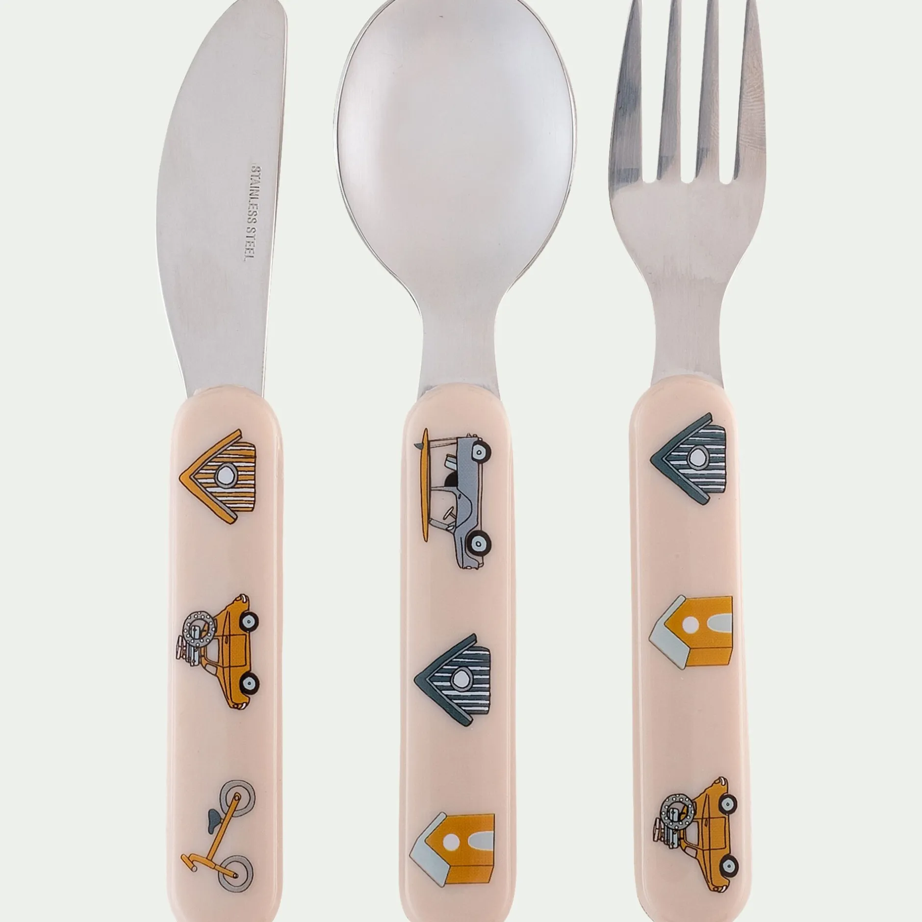 Ce set de table est composé d’un couteau, d’une fourchette et d’une cuillère en inox et en plastique aux motifs rapelant les vacances. Ses matériaux solides sont parfaits pour faciliter l’apprentissage des enfants et afin qu’ils durent dans le temps. Il est alors parfait pour apprendre à votre enfant de plus de 12 mois à manger de façon autonome dès leur plus jeune âge. Leurs bords arrondis permettent à l’enfant de ne pas se blesser tout en adoptant les bons gestes pour savourer ses plats préférés. Les couverts sont faciles à utiliser pour l’enfant et leurs petits dessins, souvenirs sur la route des vacances, le transportent dans un monde riche en bonne humeur même à l’heure du repas.