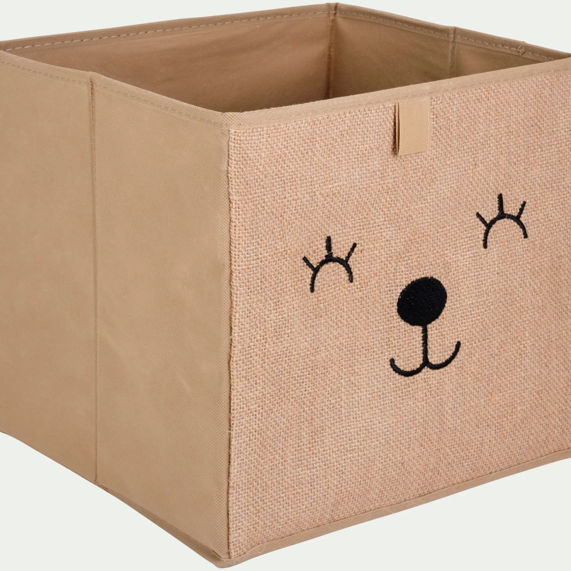 Ce joli bac de rangement en carton, recouvert d’une toile de jute est idéal pour compléter le mobilier dans la chambre de bébé; pour un espace toujours bien rangé. Ce panier de rangement est facile à placer et à déplacer. Parfait pour ranger les peluches et autres jouets, ce bac de rangement est aussi pliable. Cette boîte de rangement arbore un joli motif ludique, ce qui en fait un bel élément de déco.