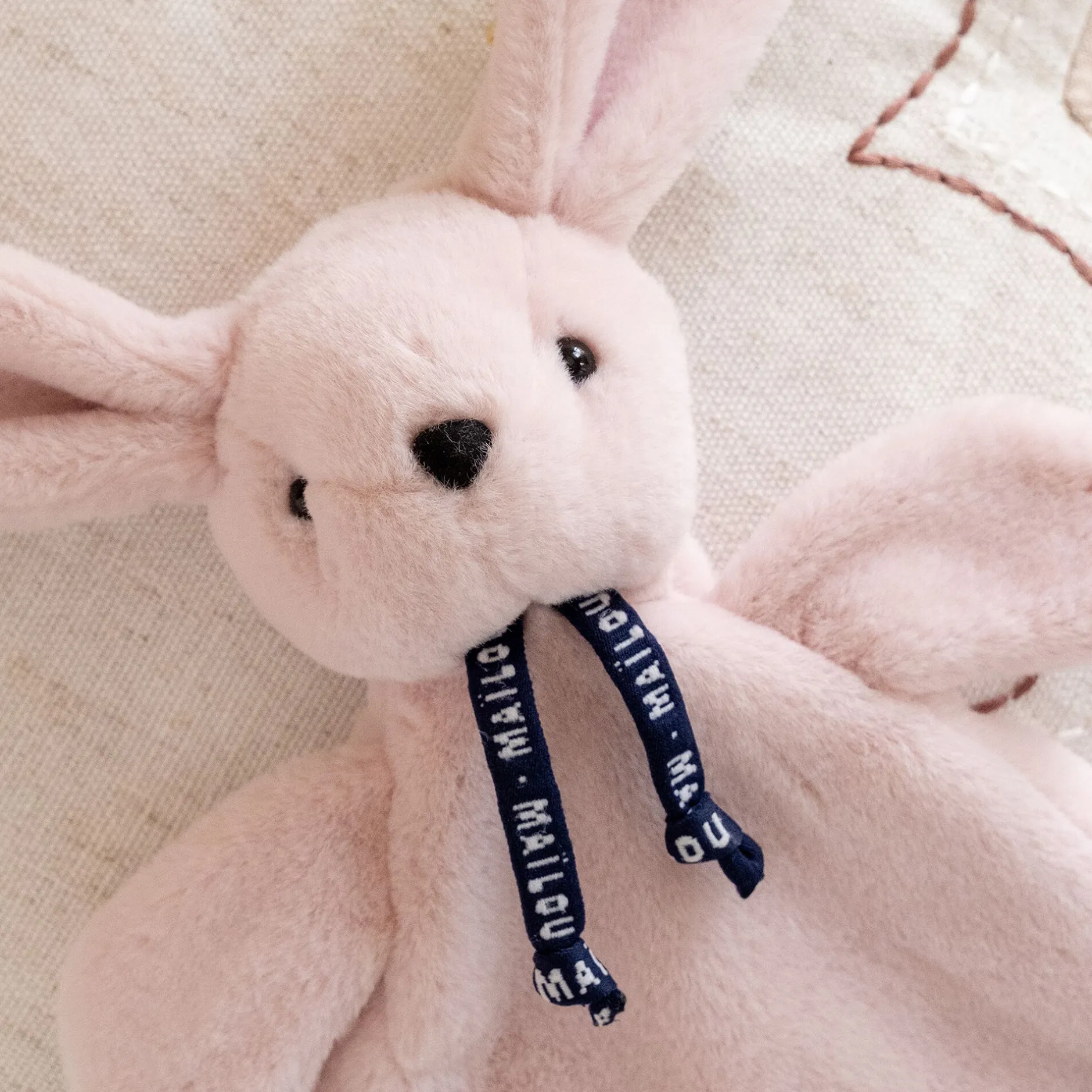 Ce doudou rose poudré représente un petit lapin, reconnaissable grâce à ses grandes oreilles. Ce doudou lapin est confectionnée avec une matière d’une infinie douceur, spécialement développée pour le confort des enfants. Il permet à votre minot de découvrir toute la richesse de la matière par le toucher. Fait à la main, ce doudou allie savoir-faire traditionnel de qualité, douceur et créativité. Votre bambin l’adoptera immédiatement. C’est aussi une belle idée de cadeau de naissance.