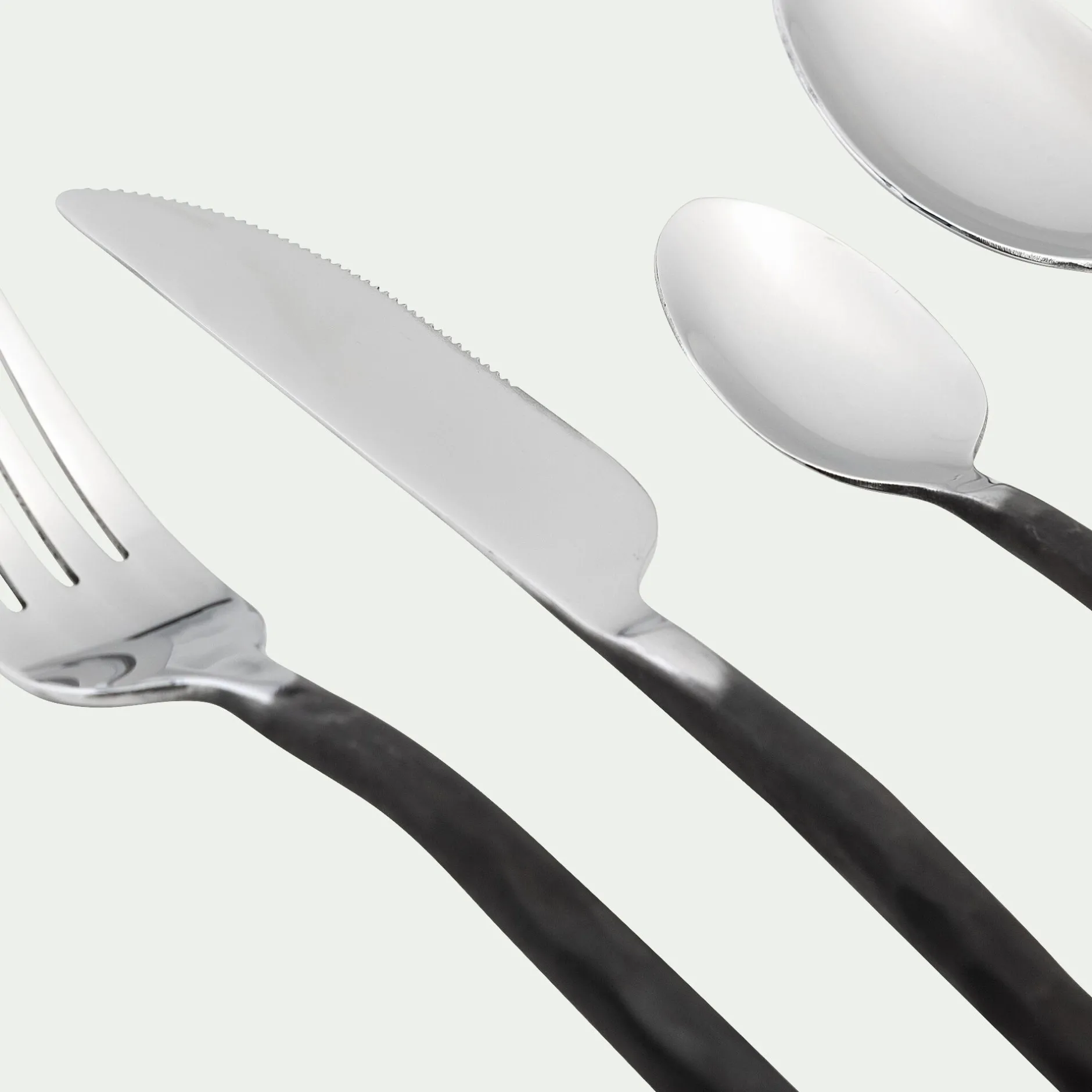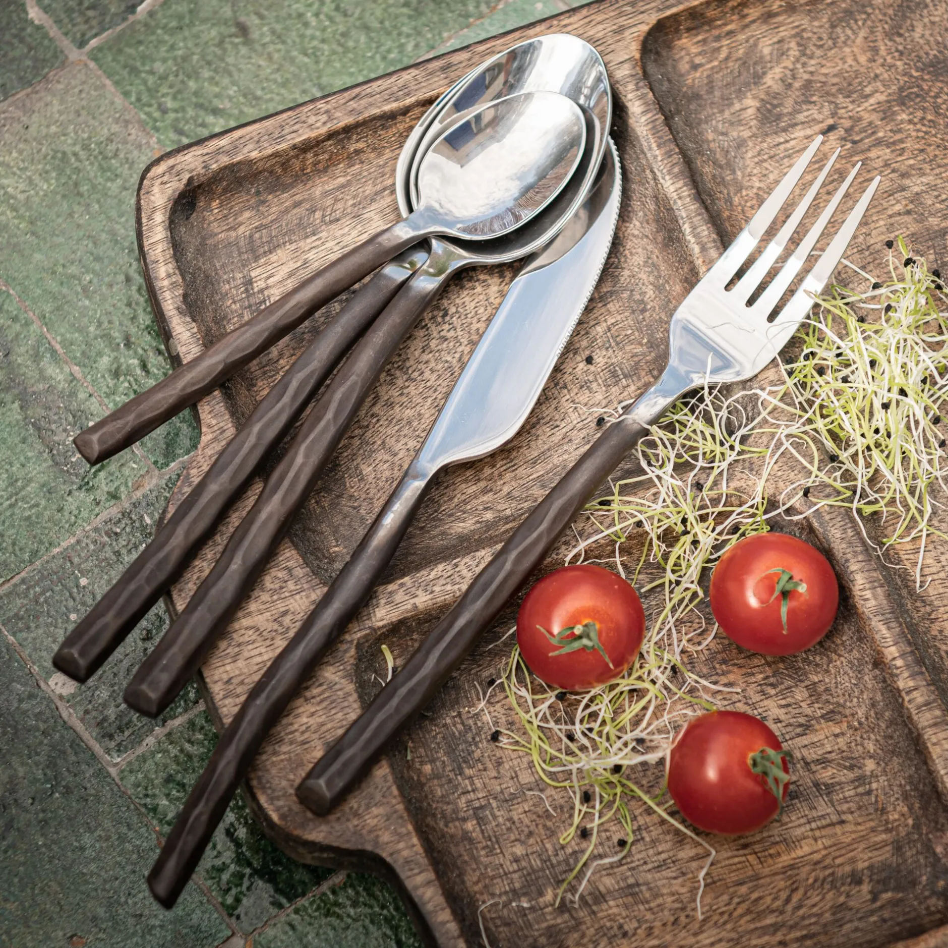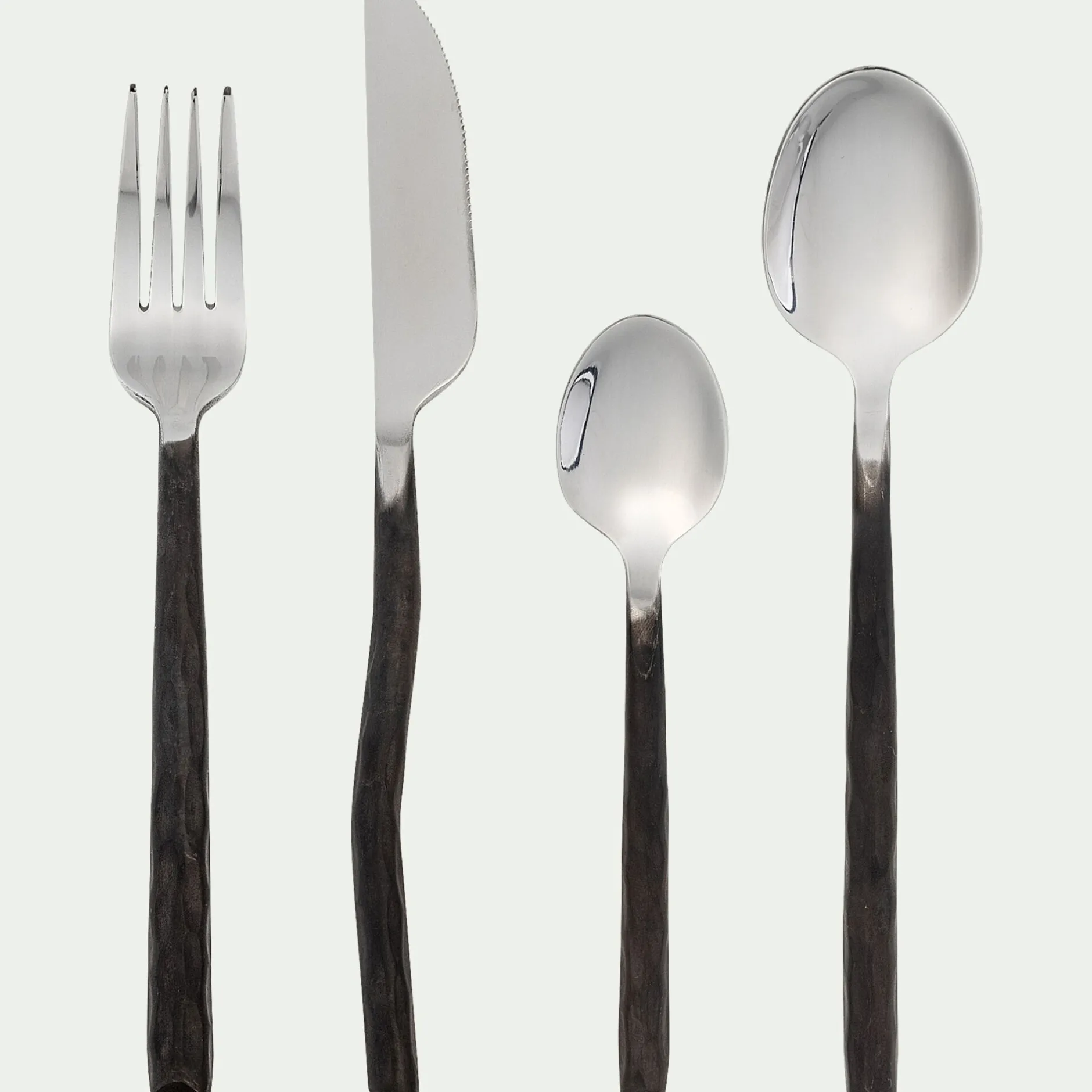 Réalisés en acier inoxydable, avec une finition noirci d’oxydation, les couverts Oxi présentent une silhouette élancée et un design raffiné. Cette ménagère de 16 pièces en inox vient sublimer avec charme votre dressage de table. Elle convient parfaitement pour les grandes occasions et s’invite donc avec délice lors de vos repas tel que le réveillon de Noël par exemple. Ces couverts s’accorderont avec votre vaisselle et votre linge de table pour une décoration empreinte de délicatesse et d’élégance.