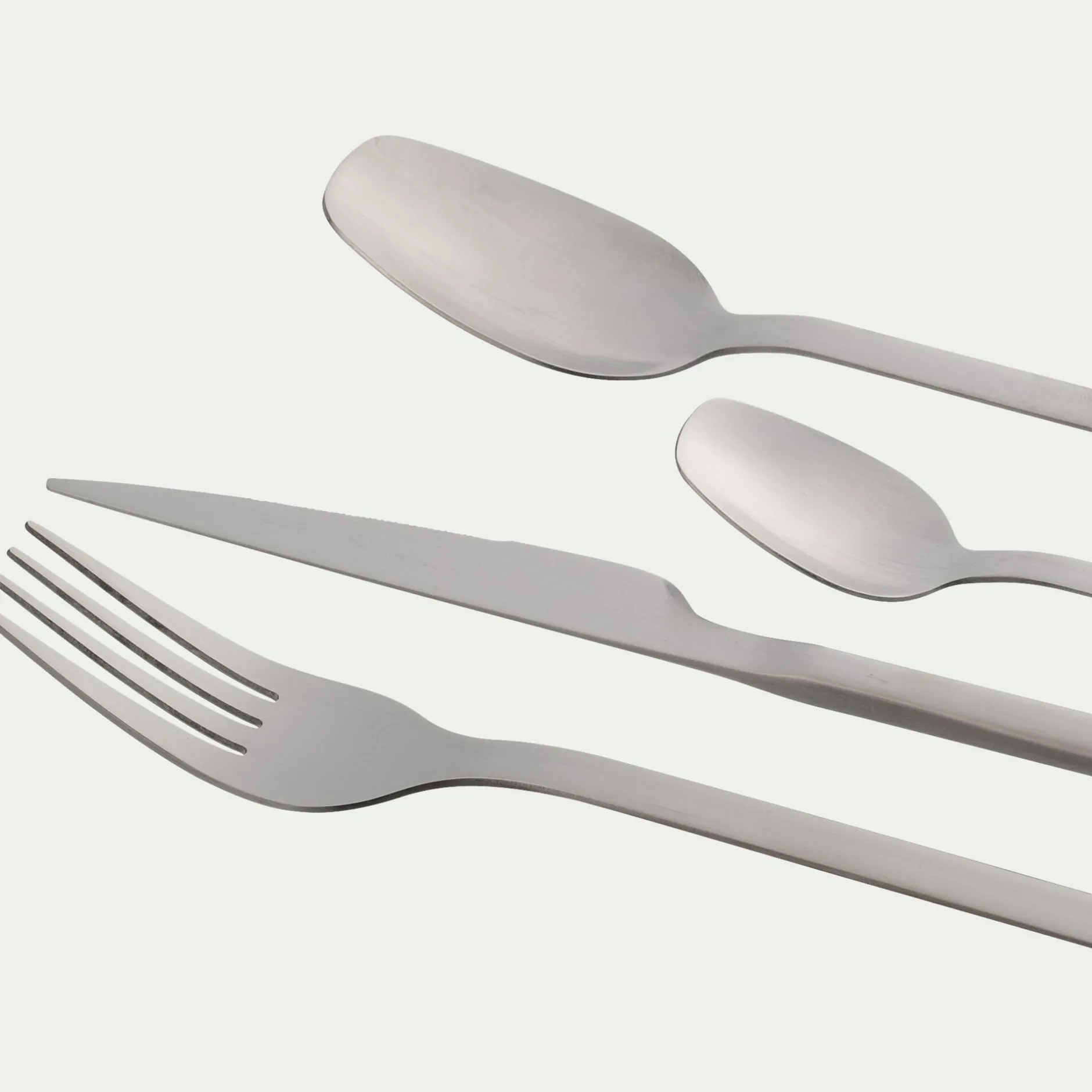Optez pour un design classique et raffiné avec cette ménagère de 24 pièces en inox, qui vient compléter vos assiettes avec élégance pour une présentation soignée. Nous apprécions particulièrement le style du couteau, de la fourchette et des cuillères, qui mettent en avant des courbes généreuses, parfaites pour des repas chaleureux au quotidien. Fabriquée en acier inoxydable avec une finition satinée, cette ménagère garantit une utilisation durable.