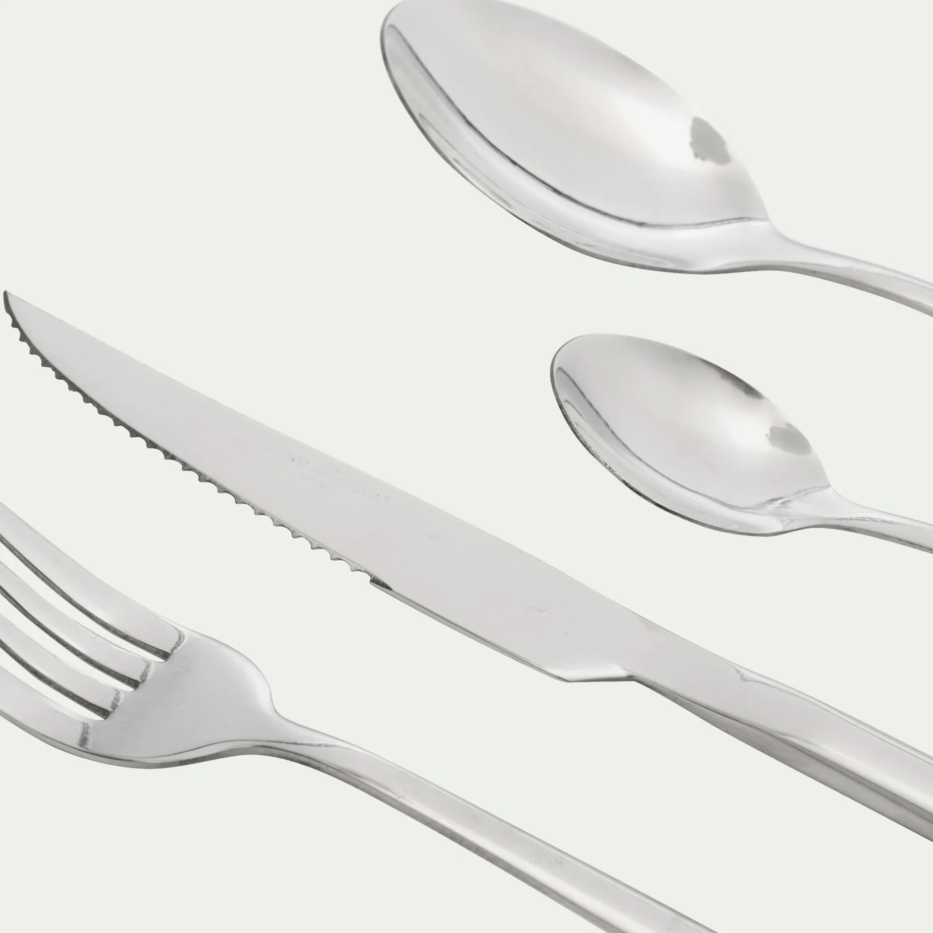 Optez pour une ménagère 24 pièces design, dont les courbes rondes viennent accentuer la gourmandise de vos plats. Les couverts Acana présentent des courbes douces qui apportent une touche moderne au dressage de votre table. Ces couverts argentés mêlent fourchettes, couteaux, cuillères à soupe et cuillères à dessert. Du salé au sucré, toutes vos recettes seront pleinement dégustées à l’aide de ces 24 couverts en inox.