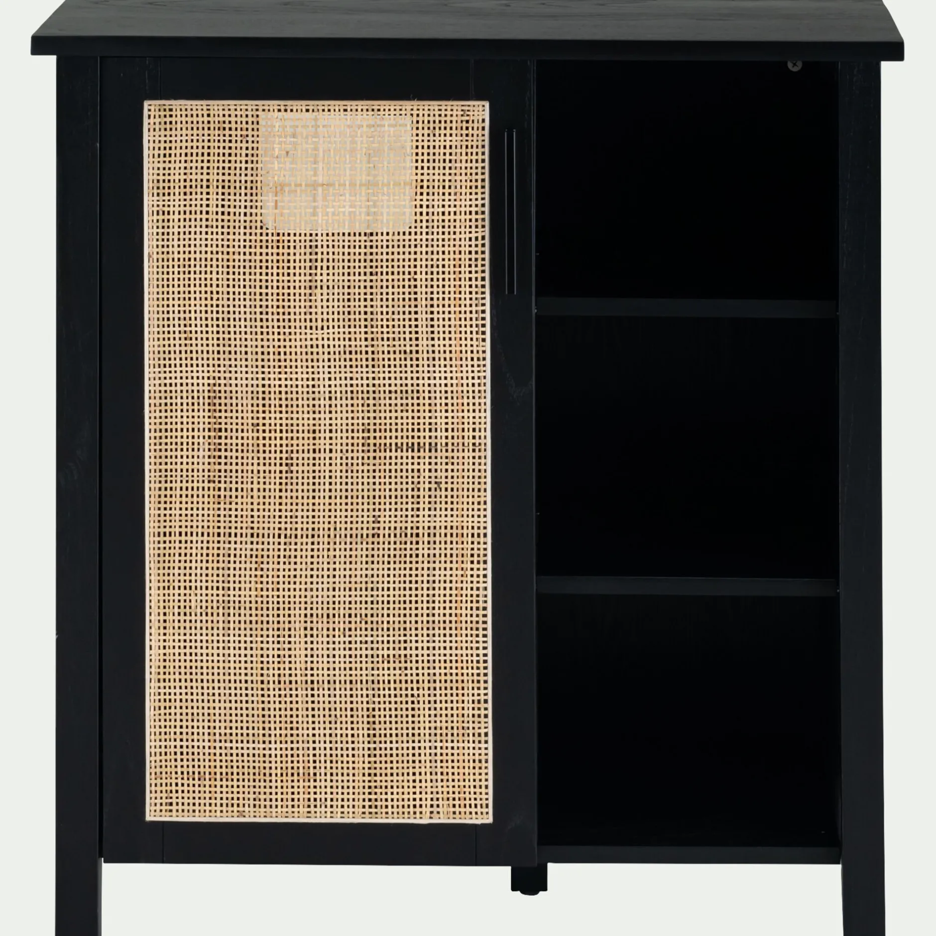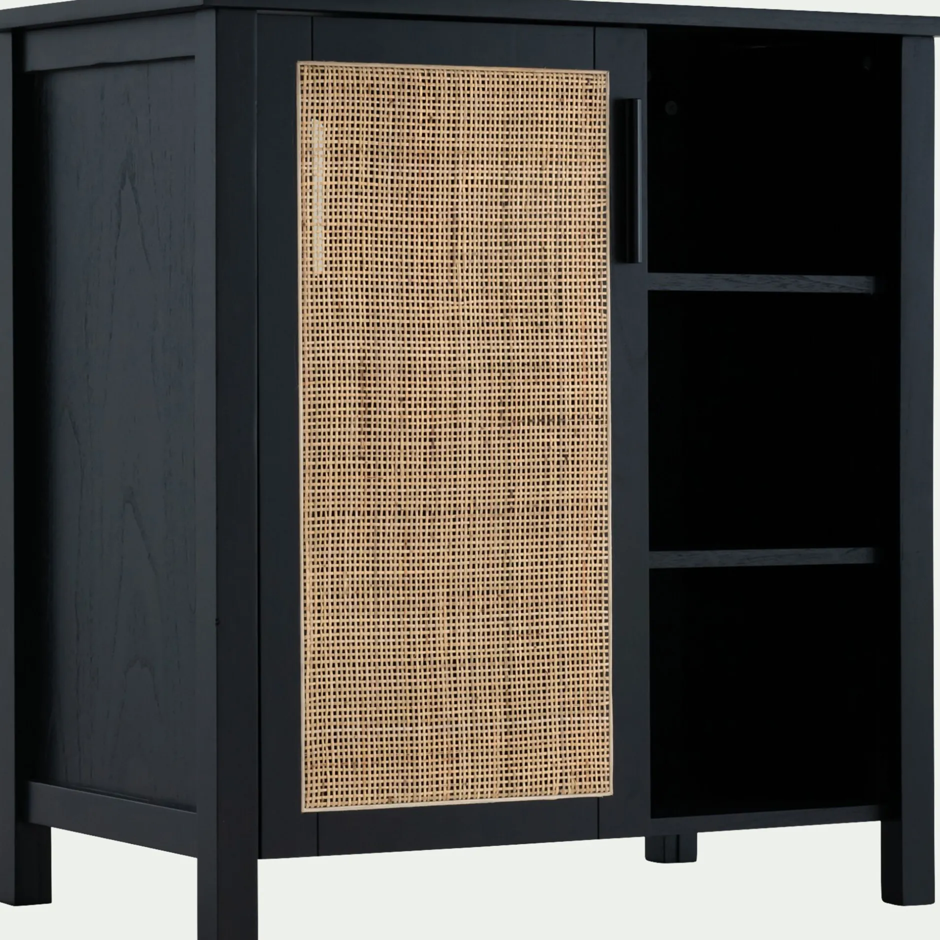 Optez pour meuble sous-vasque comme pièce maîtresse de votre salle de bain. En bois de cèdre, avec une porte en cannage, ce meuble se distingue par son style et son design. Disposant de 2 petites tablettes offrant 3 espaces de rangement, ainsi que 2 autres espaces plus larges derrière la porte, vous aurez largement de quoi disposer vos produits et autres accessoires. Laissez-vous séduire par le reste de la gamme afin de créer un ensemble de mobilier de salle de bain authentique et plein de caractère.