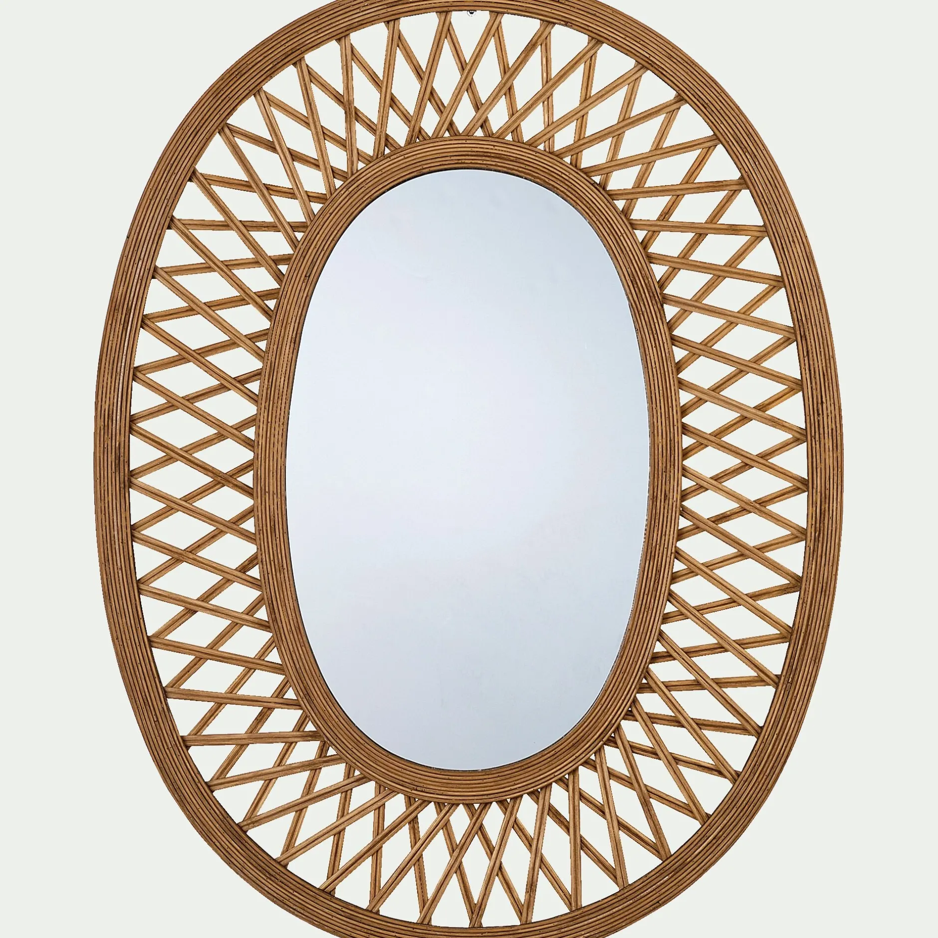 Succombez à la tendance du cannage avec ce grand miroir mural en bambou. Ce savoir-faire artisanal se décline dans différents types de bois et différents objets du quotidien. Un miroir en cannage est une pièce de caractère qui s’intégrera à tous les types de décorations. Art déco, ethnique, naturelle, moderne… La déco se crée et prend vie autour de ce miroir en bambou. Les fibres naturelles se courbent et se croisent grâcieusement pour un résultat soigné et élégant. Dans l’air du temps, le cannage apporte de l’authenticité et de la chaleur à vos pièces.