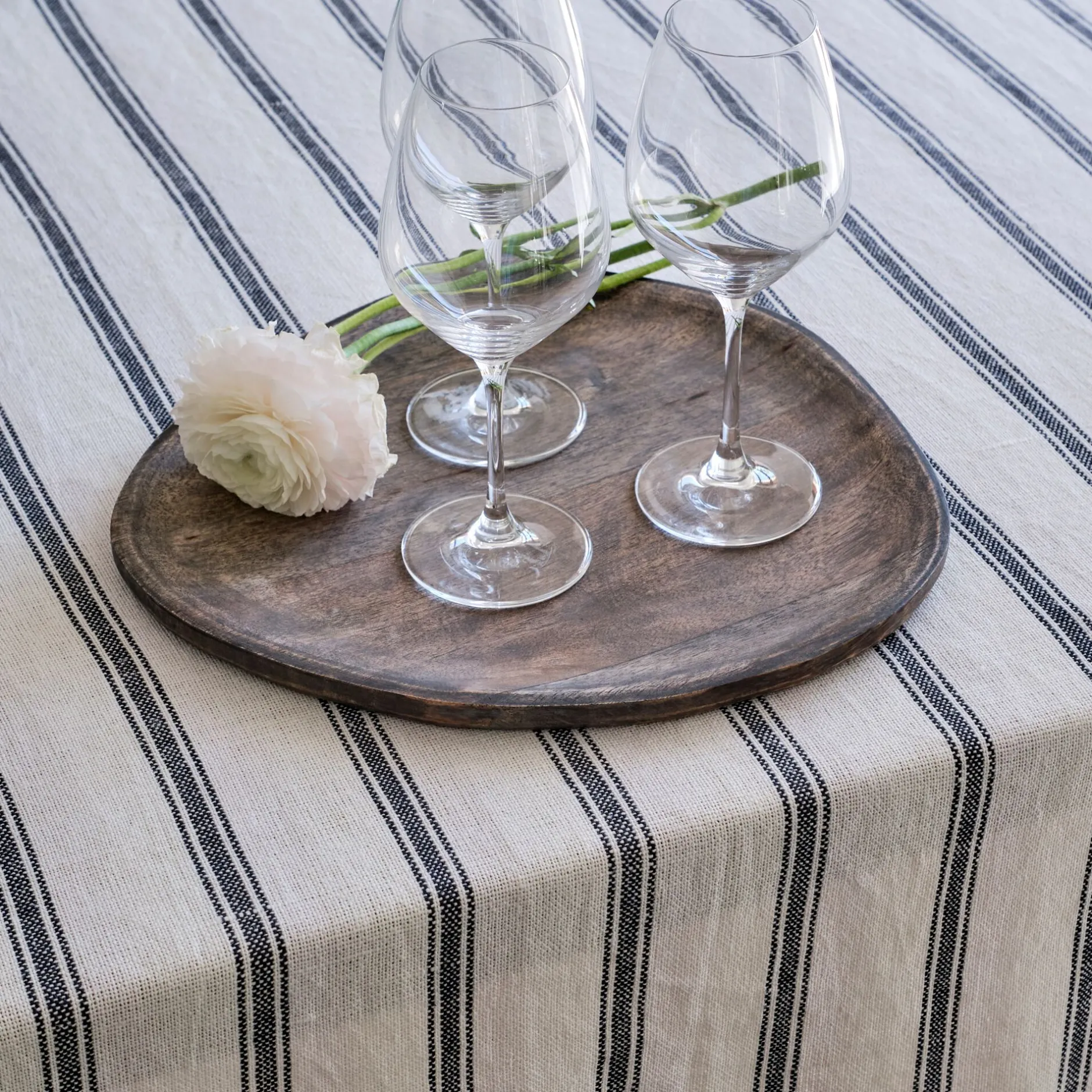 Blanc et noir. Le duo de couleur idéal qui contraste la nuit et le jour. Cette nappe de table en lin et coton reflète l’esprit méditerranéen de la marque alinea. Intemporelle, elle s’inscrit dans un usage quotidien. Vous jouerez de ses lignes uniformes, pour un dressage raffiné.