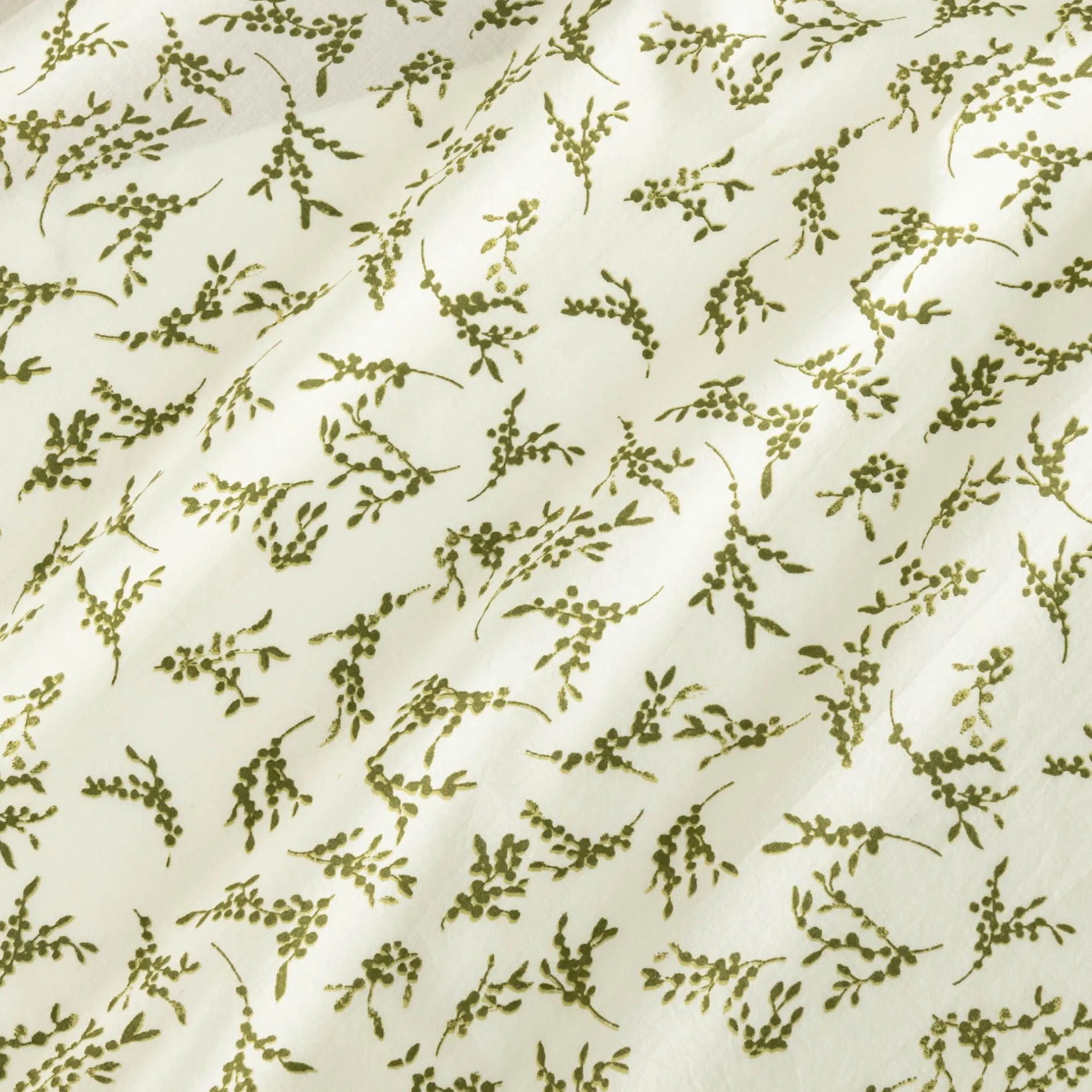Cette nappe, confectionnée en coton certifié Oeko-Tex, allie praticité et raffinement. Son fond blanc met en valeur un motif végétal vert, apportant une touche de fraîcheur et de nature à votre intérieur. Cette belle nappe rectangulaire de 150×250 cm habille avec élégance votre table de repas et offre une belle base sur laquelle dresser votre art de la table.