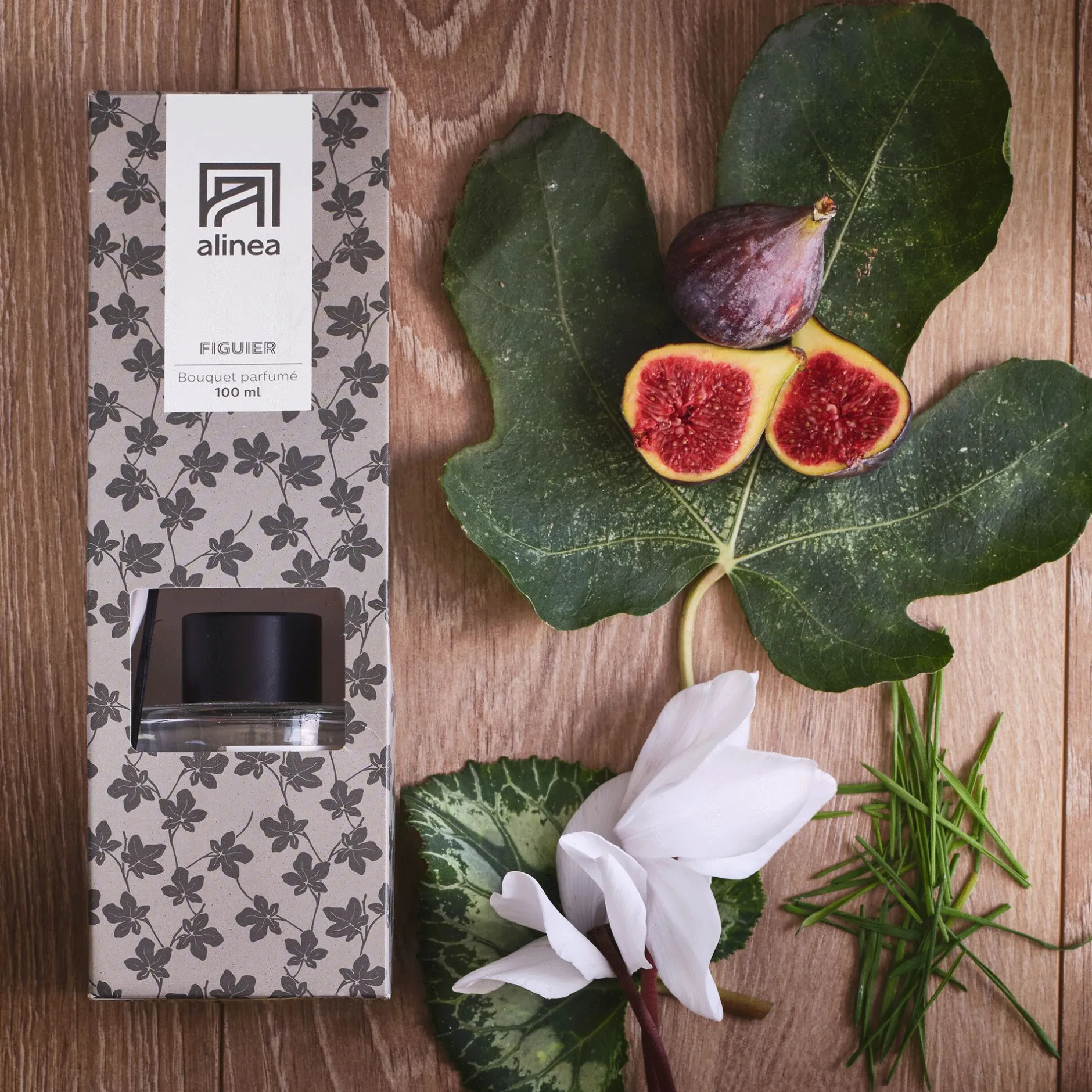 Cette fragrance délivre le bouquet suave et aromatique caractéristique de la feuille de figuier. Aux notes vertes s’entremêlent des notes de chêne, thym et ciste. Cette senteur est librement inspirée de la sieste de fin de déjeuner aux heures brûlantes sous le feuillage. Une escapade ancestrale dans la vallée du Jourdain ou une croisière aux Cyclades. La douceur d’une feuille duveteuse. Les bâtonnets en rotin de ce bouquet parfumé permettent une diffusion en continu et en toute sécurité. À chaque renouvellement, choisissez le parfum de votre choix. Laissez-vous séduire par le diffuseur de parfum Figuier.