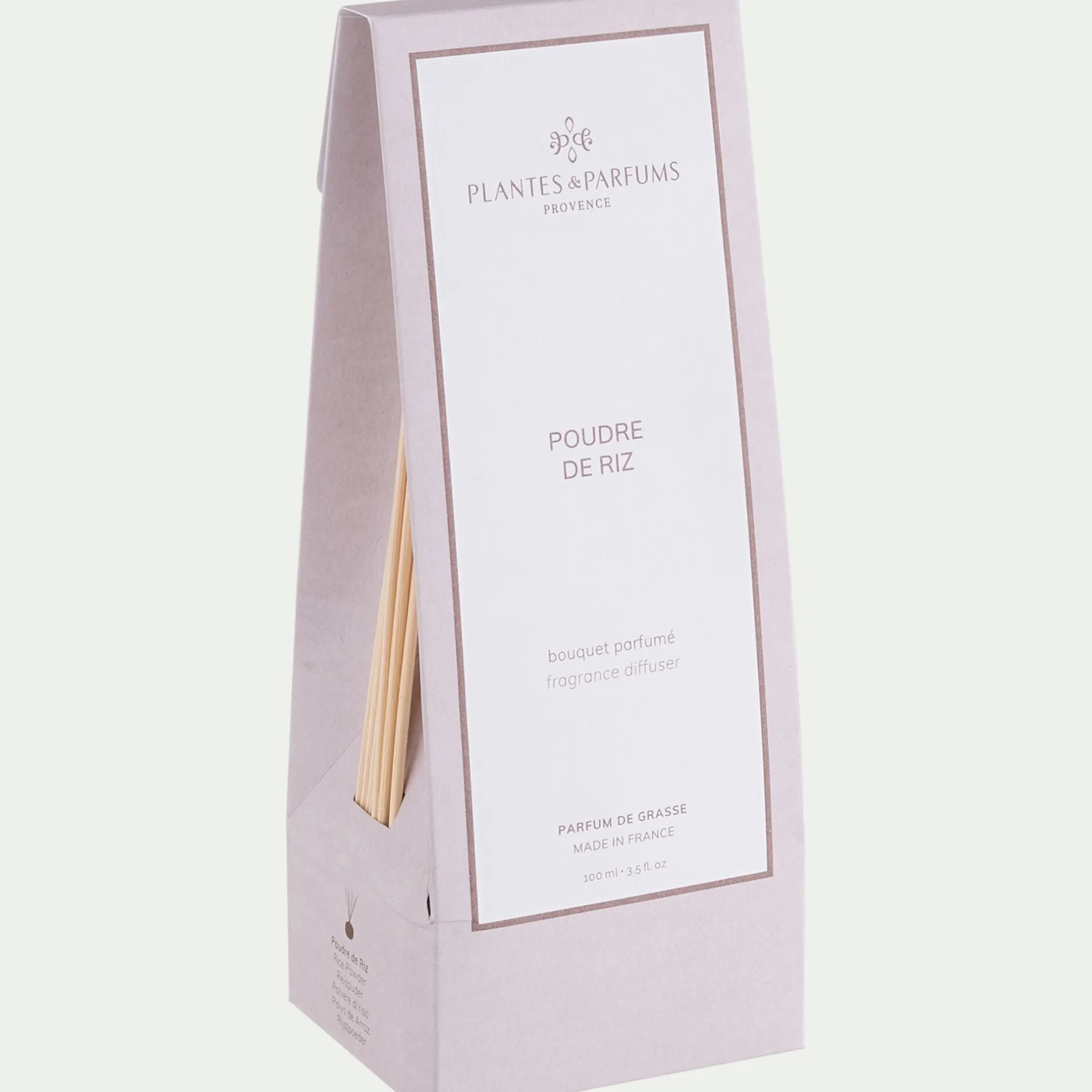 Laissez-vous envelopper par la douceur poudrée de ce diffuseur de parfum de 100 ml, évoquant un sillage délicat et réconfortant. Les notes aériennes de riz, de violette et de mimosa s’entremêlent en tête, annonçant un cœur chaleureux et boisé où le santal et le cèdre se rencontrent. Le fond sensuel de musc, d’ambre et de tonka vient parfaire cette fragrance subtile et élégante. Conçu avec des parfums de Grasse et fabriqué en France, ce bouquet parfumé apportera une atmosphère raffinée à votre intérieur. N’hésitez pas à explorer notre collection pour découvrir d’autres senteurs uniques.