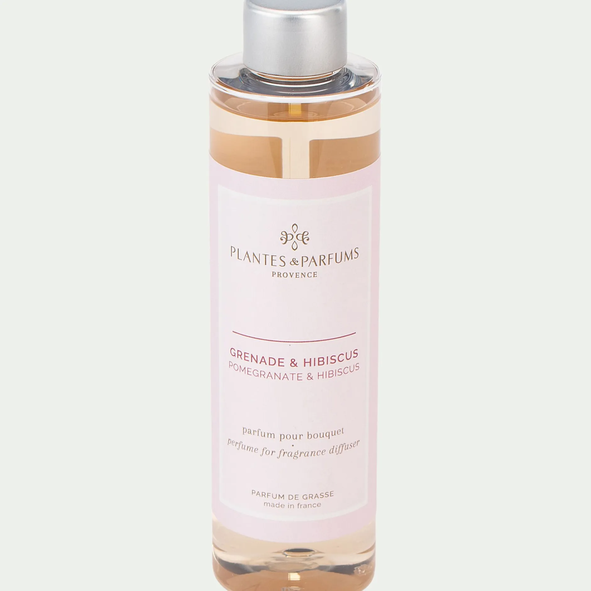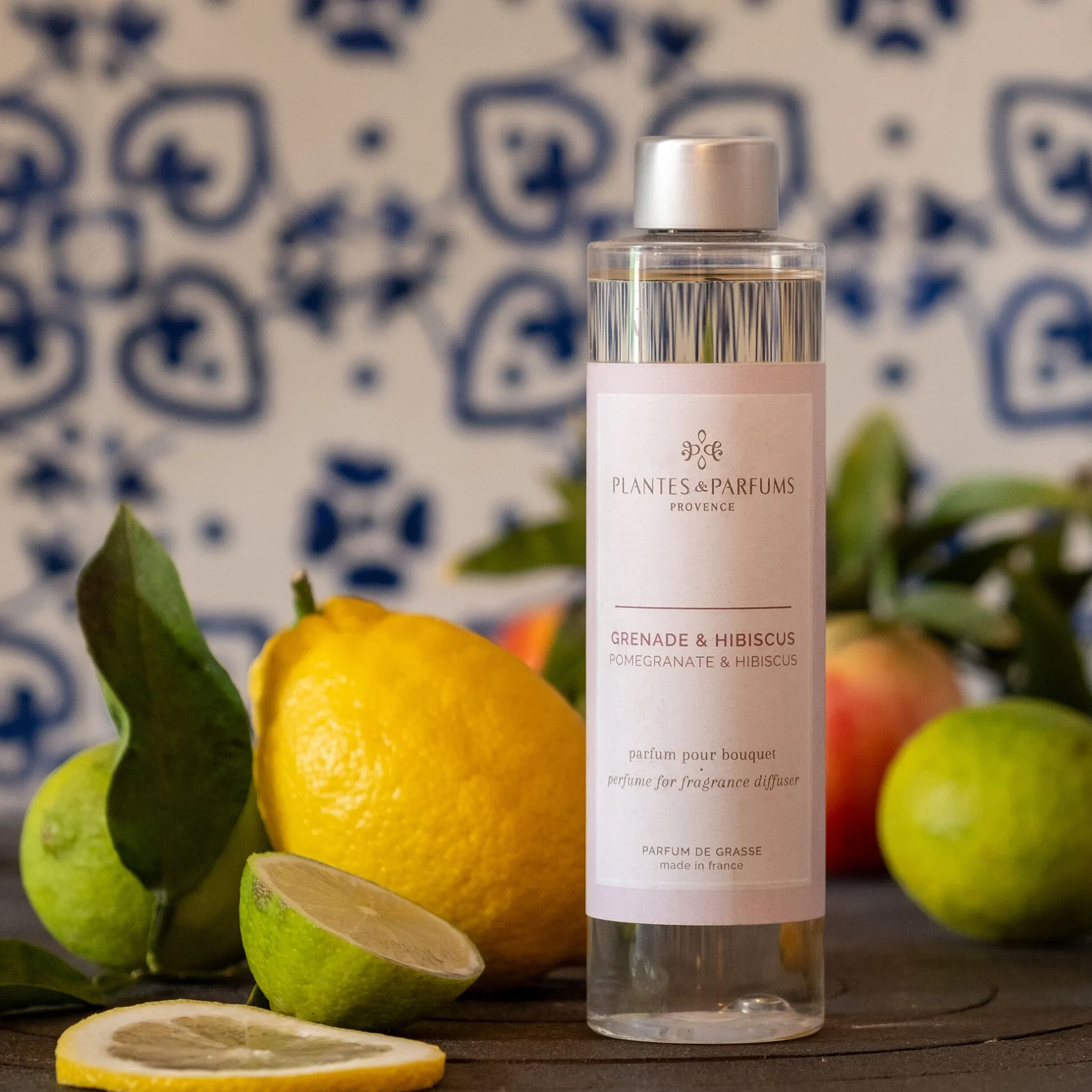 Un parfum d’intérieur à la délicieuse senteur venue d’ailleurs. Une fragrance d’allégresse aux notes de pêche et de citron associées à l’exotisme de l’hibiscus et de la grenade. Une sensation de bien être exceptionnelle qui s’invite dans toutes les pièces de la maison. Un parfum fabriqué en Provence, qui met à l’honneur l’excellence du savoir faire français.