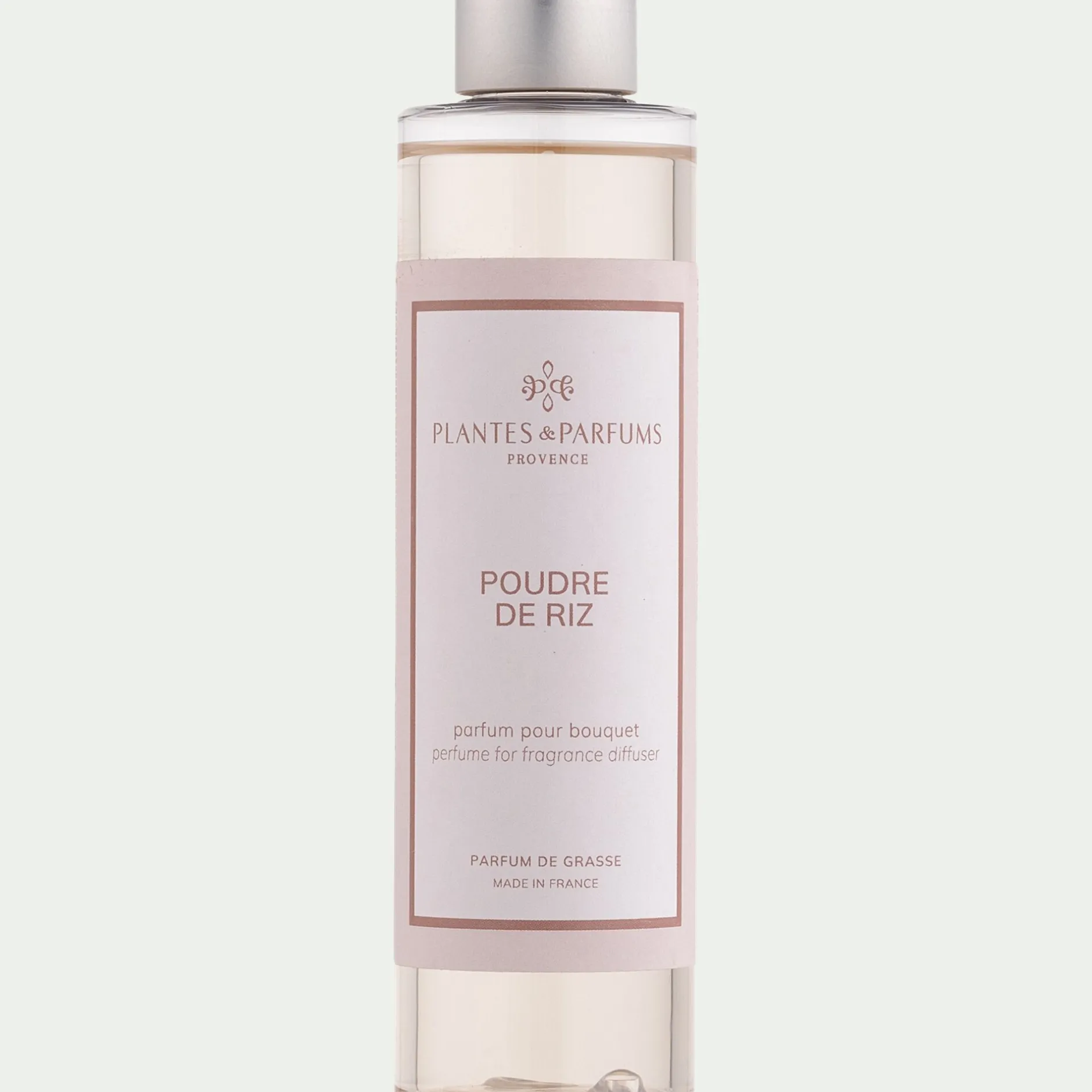 Offrez une nouvelle vie à votre diffuseur de parfum poudre de riz avec cette recharge de 200 ml, fabriquée en France avec des parfums de Grasse. Prolongez la délicate sensation poudrée des notes de tête de riz, de violette et de mimosa, qui se déploient sur un cœur boisé et chaleureux de santal et de cèdre. Les notes de fond de musc, d’ambre et de tonka assurent un sillage doux et persistant dans votre intérieur. Économique et respectueuse de l’environnement, cette recharge pour diffuseur vous permet de profiter durablement de votre fragrance préférée. Découvrez également nos diffuseurs élégants pour compléter votre expérience olfactive.