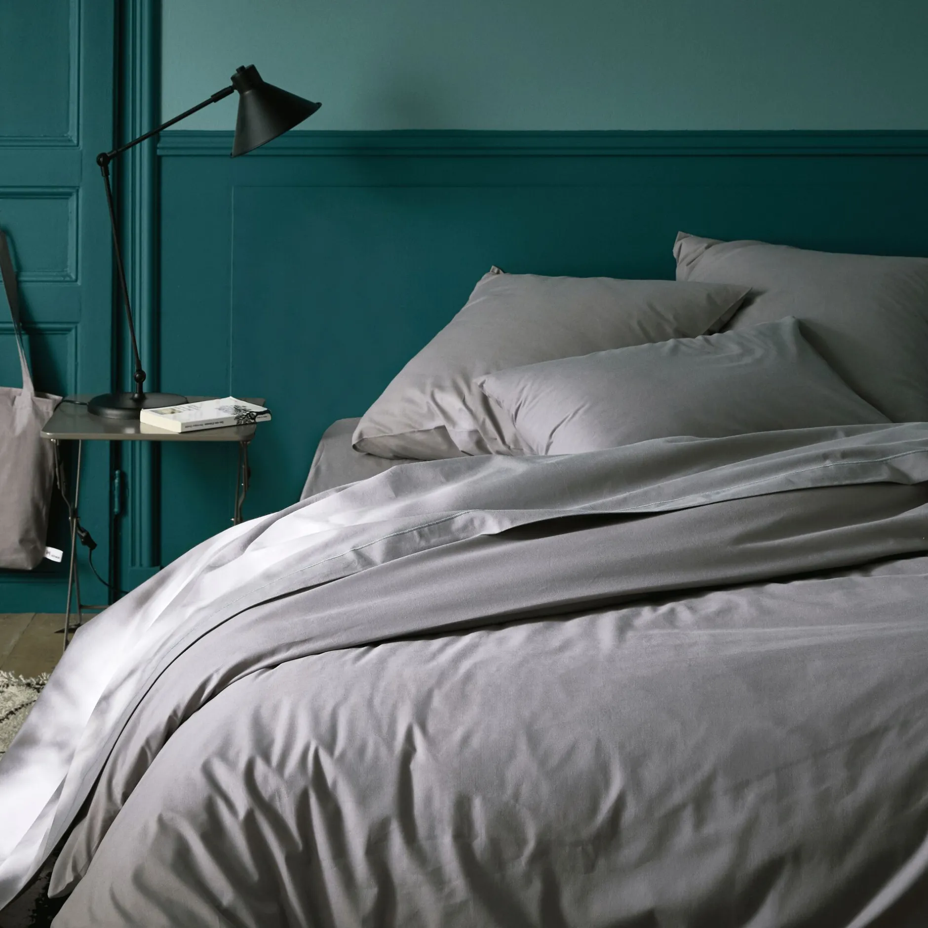 La gamme Calanques est un basique 100% coton. De très bonne qualité, le coton est tissé à 57 fils/cm², ce qui correspond à un tissage sérré et résistant. Très doux, il offre un confort et un toucher agréable. La gamme existe en 8 coloris dont le gris restanque qui évoque ces petits murs en pierre sèche typique du sud. C’est un peu de paix qui vient habiter la chambre.