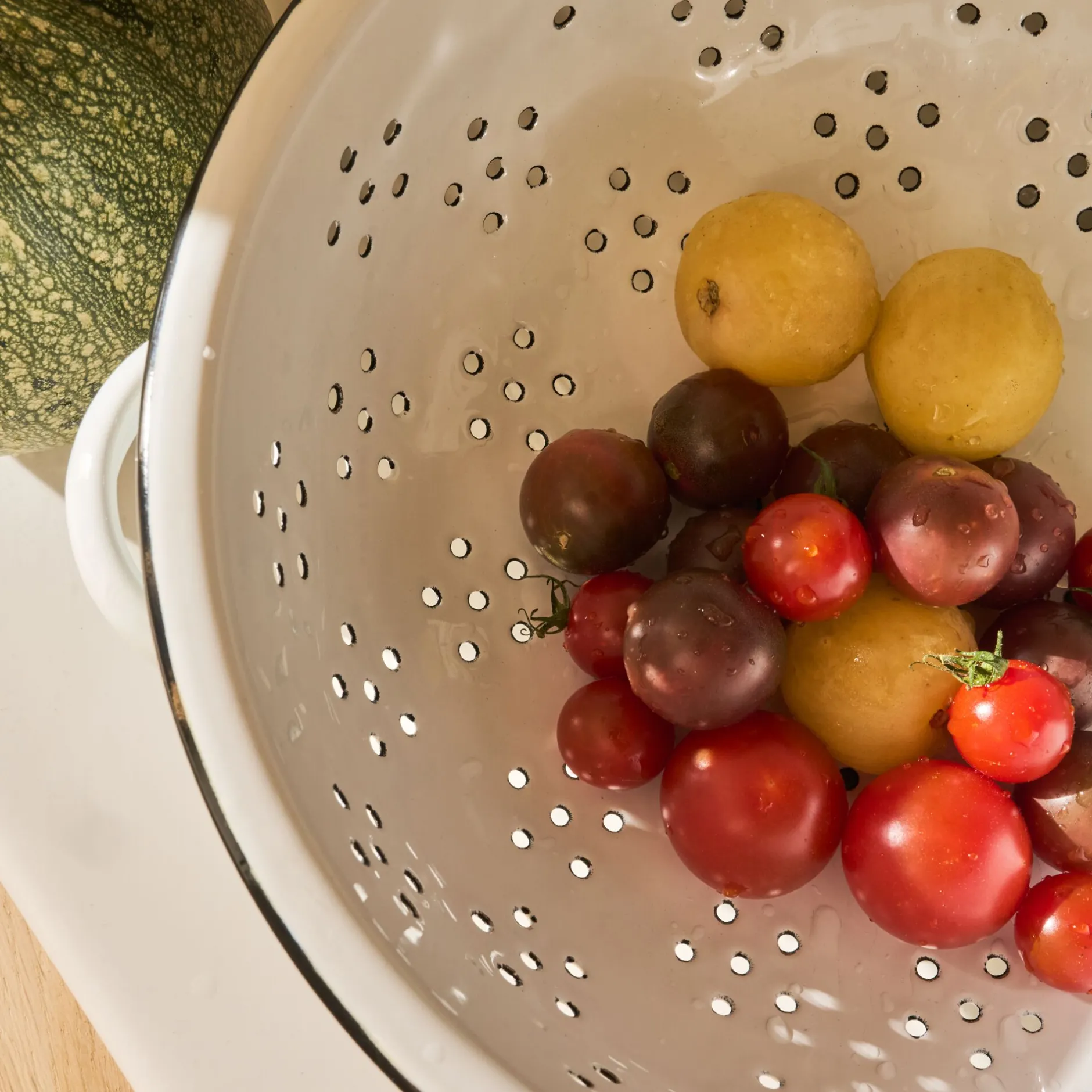 La passoire Cigogne séduit par son style rétro et sa praticité. Réalisée en acier émaillé, elle affiche un diamètre de 22 cm et un coloris blanc rehaussé d’un fin liseré noir. Dotée de deux poignées latérales, elle assure une bonne prise en main au quotidien. Ses perforations, disposées en forme de fleur, permettent un égouttage rapide et efficace des pâtes, légumes ou fruits. Solide et facile d’entretien, cette passoire en métal passe au lave-vaisselle, pour allier charme authentique et fonctionnalité moderne dans la cuisine.