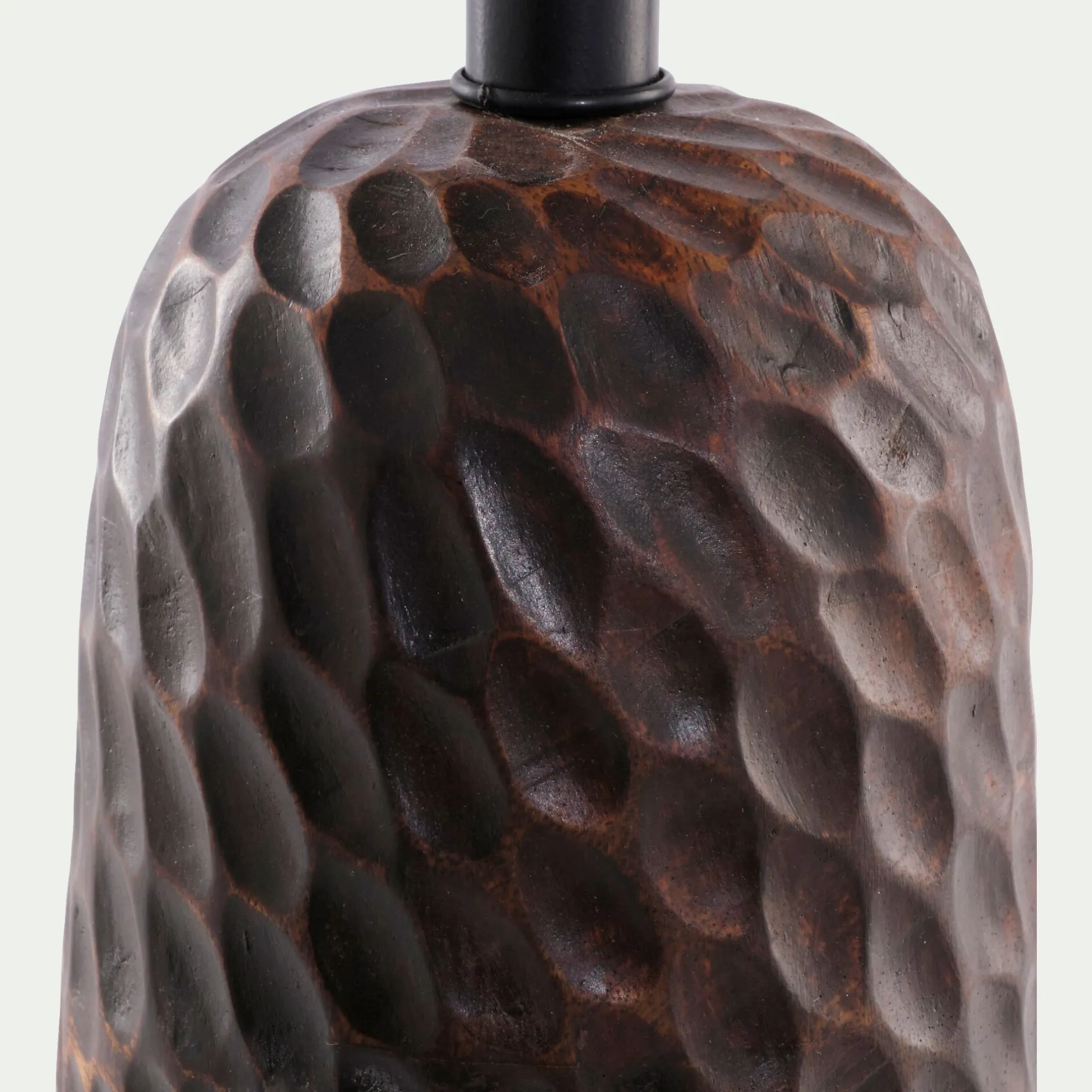 Optez pour ce pied de lampe en bois de manguier. D’ores et déjà électrifié, il ne lui manque que l’ampoule et l’abat-jour de votre choix pour fonctionner. Ce pied de lampe au design authentique est parfait pour personnaliser votre déco. En effet, il vous suffit d’assembler les éléments à votre guise pour obtenir une lampe à poser qui vous ressemble. Ce pied de lampe marron est très élégant et se marie à tous les types d’abat-jour. Obtenez alors un joli luminaire pour apporter un charme supplémentaire à votre intérieur.