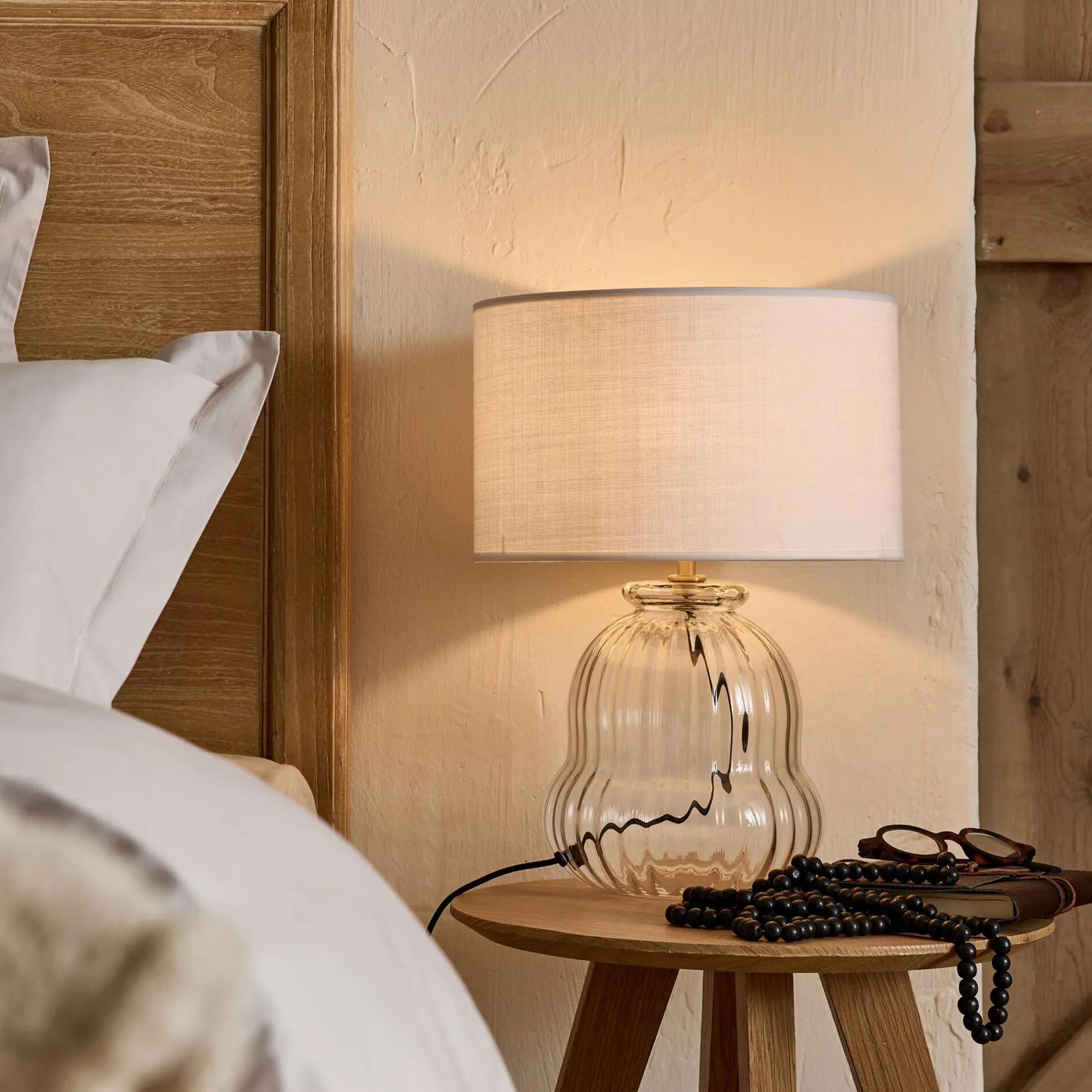 Ce pied de lampe électrifié en verre transparent se distingue par son design élégant et organique. Sans abat-jour, il laisse libre cours à la créativité pour le compléter selon vos envies et créer un luminaire unique et personnalisé. Le verre subtilement strié ajoute une touche de texture et de relief, captant la lumière pour accentuer ses reflets.
