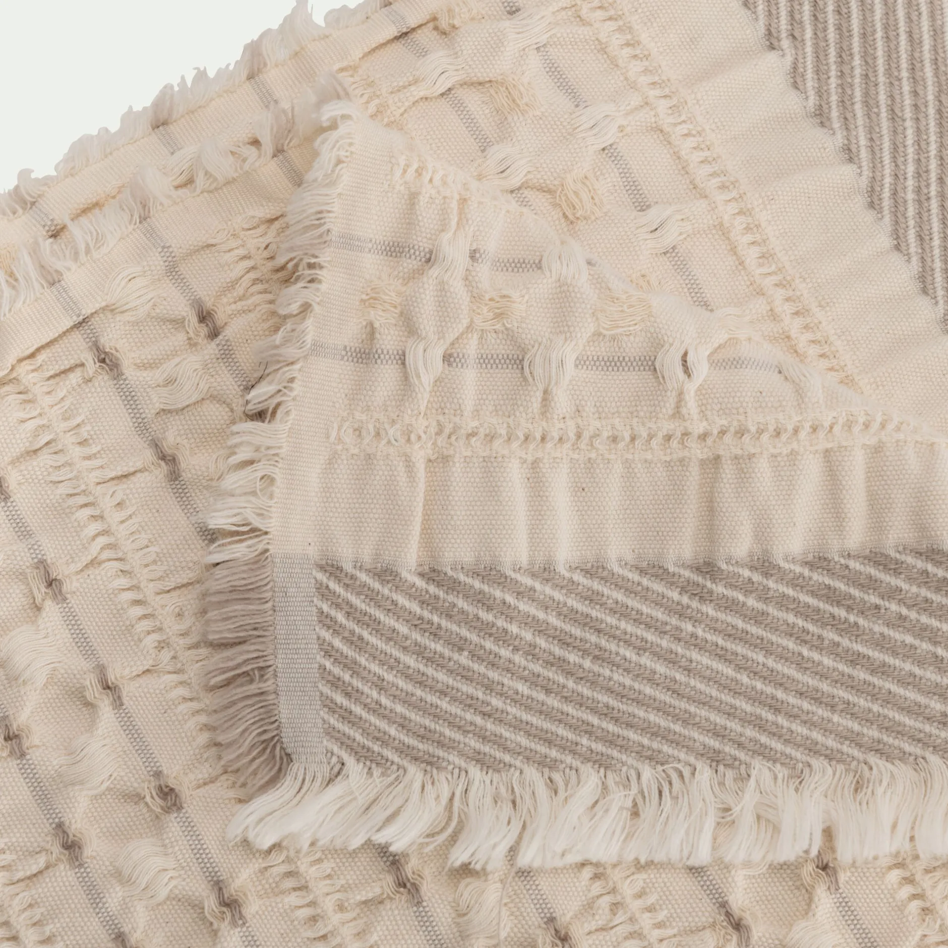 Pour protéger votre lit tout en sublimant la décoration de votre chambre, rien de tel qu’un couvre-lit. Ce couvre-lit de 130×170 cm recouvre parfaitement l’assise et le dossier de votre fauteuil. En coton, ce couvre-lit blanc est doux au toucher et passe aisément en machine après utilisation. Ce linge de lit tire sa particularité de son tissage fantaisie. En effet, plusieurs points de couture se rencontrent pour donner vie à un plaid en relief. Des motifs ton sur ton se dessinent : le point bulle, des franges, des volants, des rayures… Une explosion de détails monochromes qui inspirent à la fois l’énergie et la délicatesse. Ce linge de maison apporte également une touche lumineuse à la décoration : un modèle intemporel.