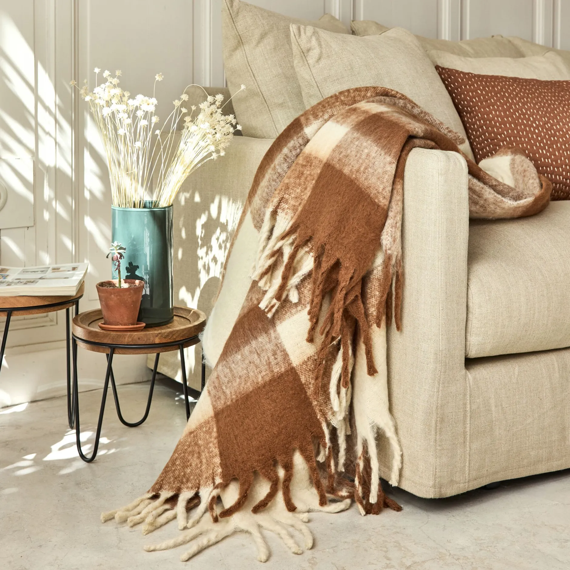 Ce plaid de 130×170 cm enveloppe les moments de détente d’une chaleur bienvenue. Sa matière synthétique douce et moelleuse en fait un allié idéal pour l’hiver. Le motif à carreaux dans des tons marron et blanc crée une ambiance cosy et réconfortante, parfaite pour réchauffer l’atmosphère du salon ou de la chambre. Des franges aux extrémités viennent compléter ce look chaleureux avec une touche d’authenticité.