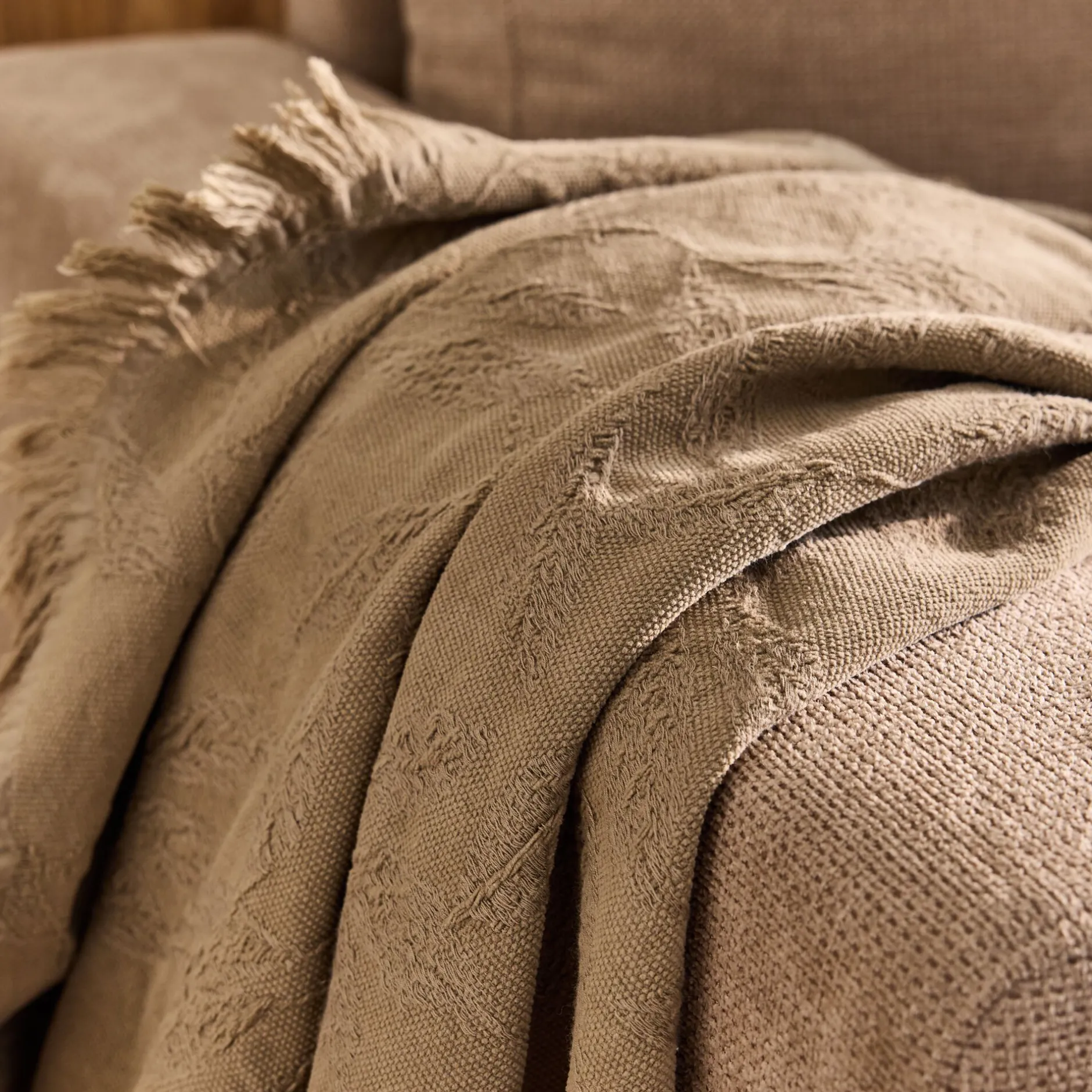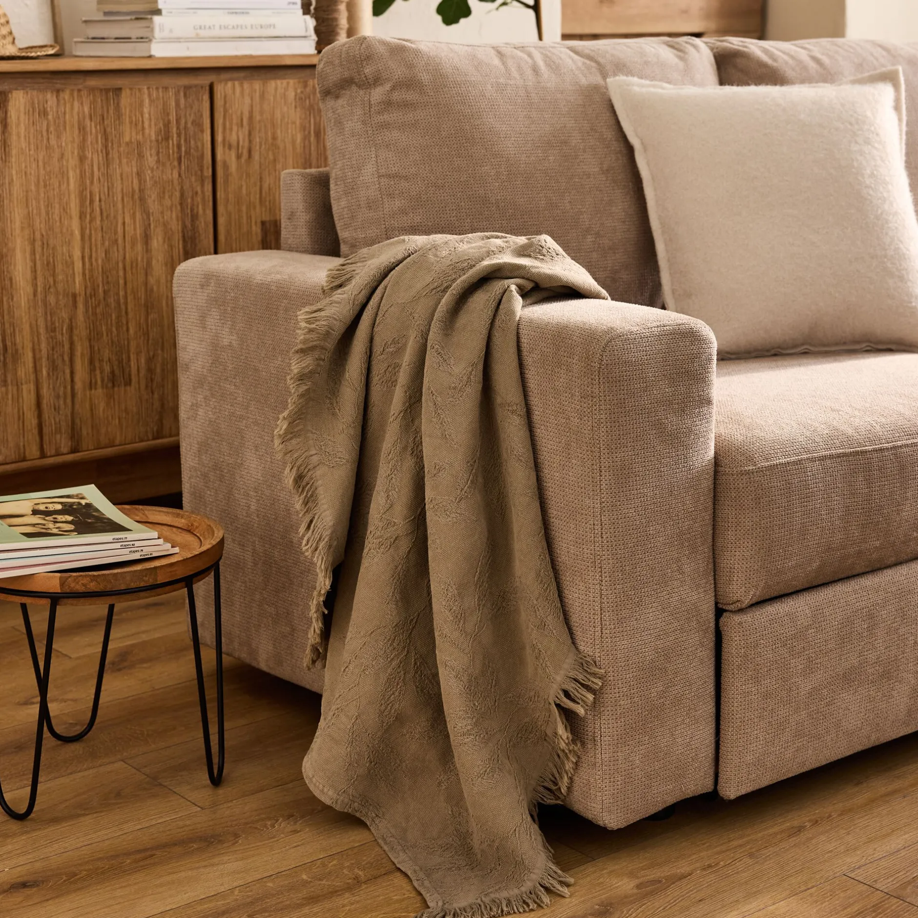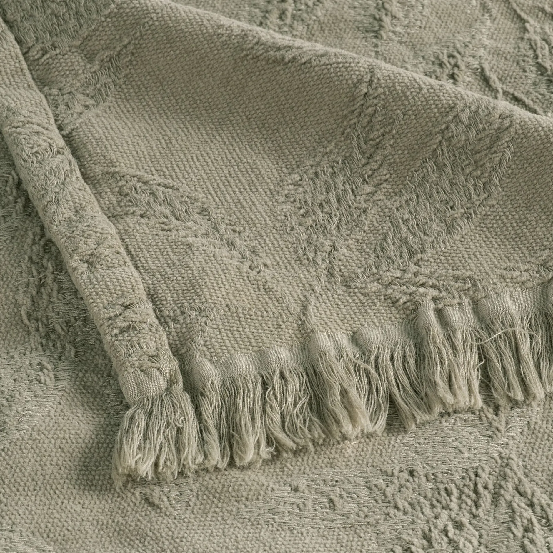 Plaid*alinea Plaid en coton motif végétal finition franges 130x170cm – Vert