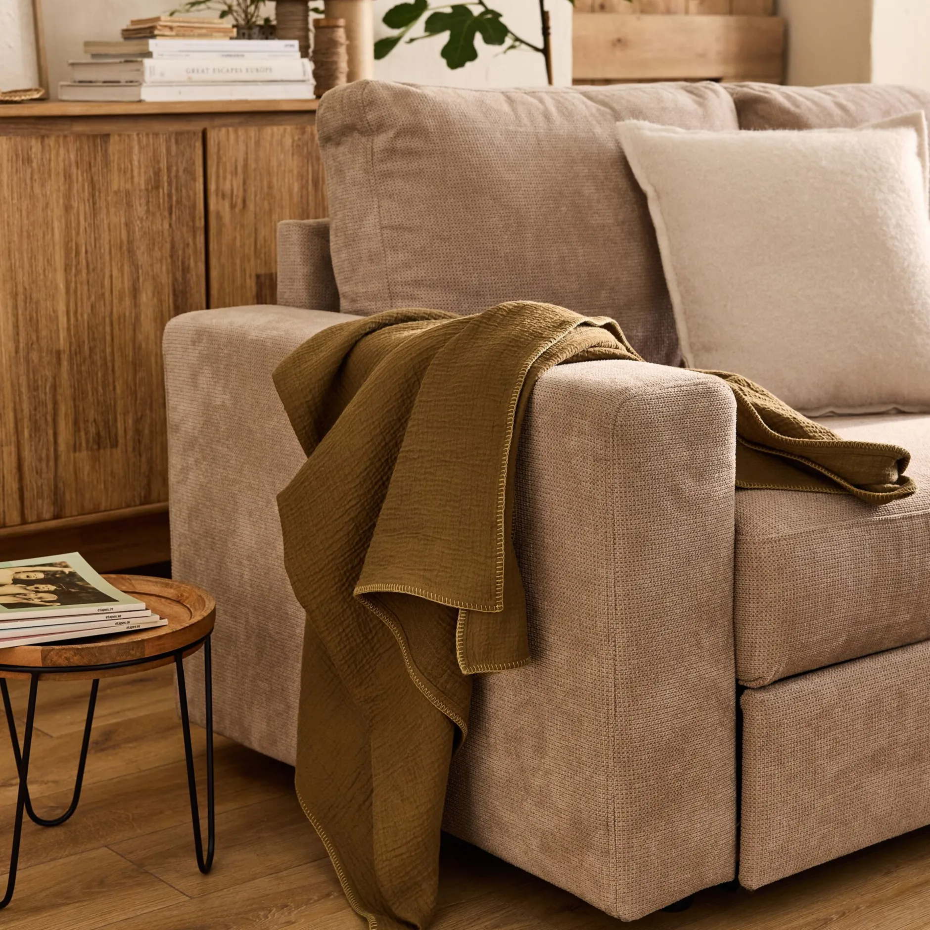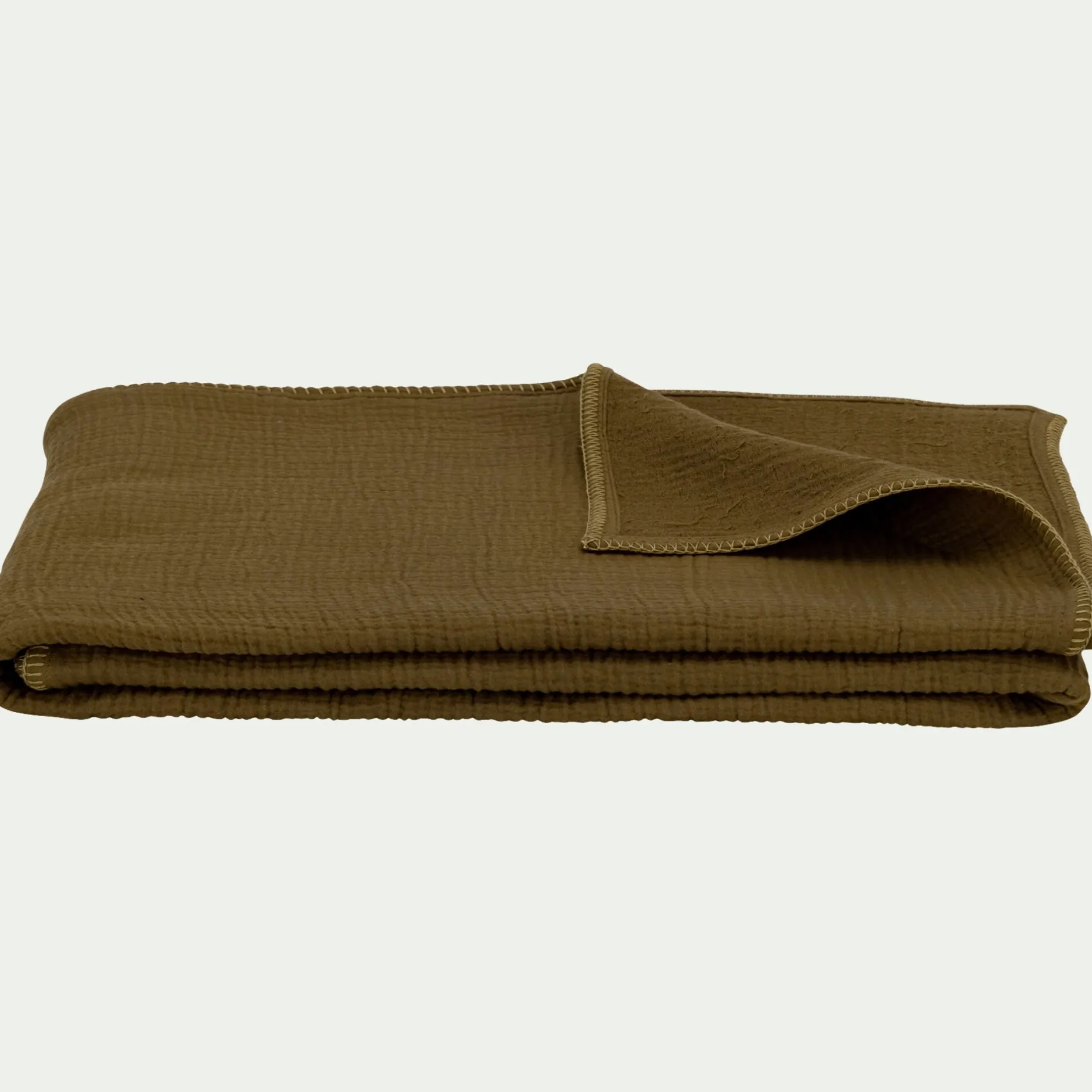 Le plaid Kali est une très jolie pièce, idéale pour décorer votre intérieur et vous tenir chaud lors des soirées un peu fraîches. Dans un beau vert, ce plaid de 130×170 cm évoque la pureté des paysages et de sa garrigue verdoyante. Fabriqué en triple gaze de coton, il offre une douceur inouïe pour des moments de confort absolu. Sa finition point de cheval, qui contraste joliment avec le vert, apporte une note raffinée sur tout le pourtour.