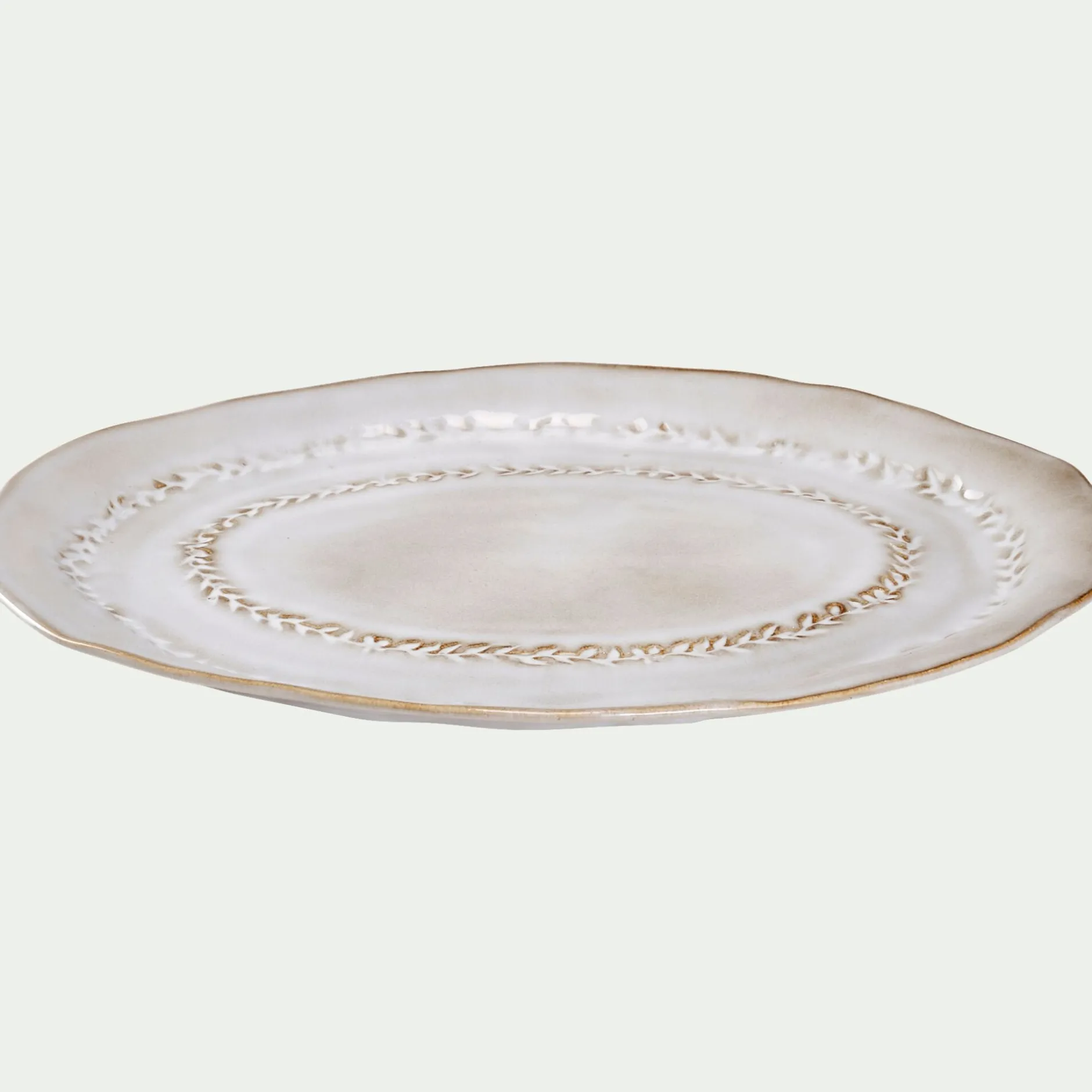 Plat De Service Et Saladier|Assiette De Noël*alinea Plat de présentation ovale à motif végétal en grès L40cm – alpilles Beige