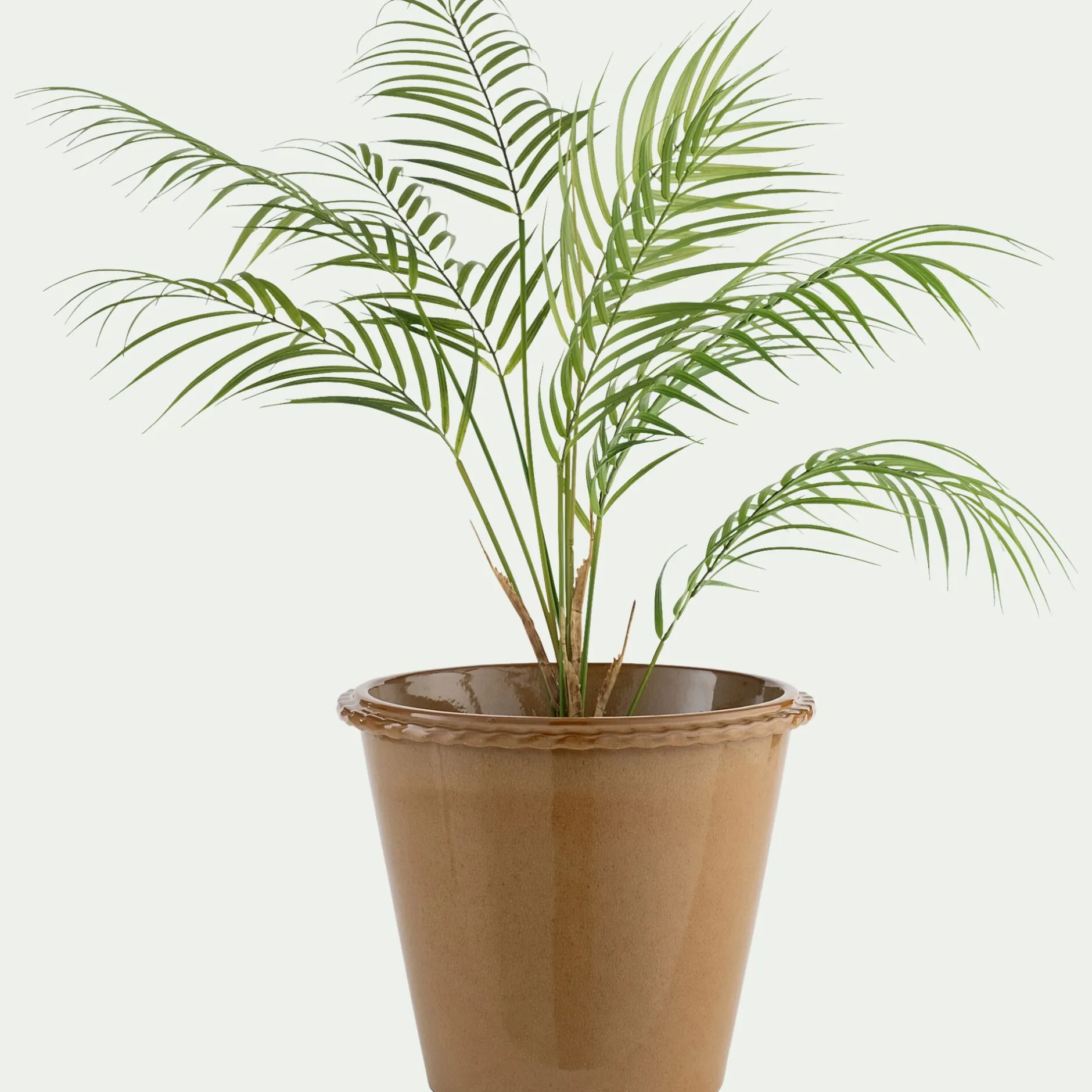 Le pot d’extérieur Arudy allie la beauté de la terre cuite à une finition brillante, avec son vernis jaune. Conçu pour être à la fois fonctionnel et décoratif, ce pot dispose d’un trou de drainage, idéal pour être posé directement sur l’herbe ou accompagné d’une coupelle. Fabriqué au Portugal, cette décoration du jardin met en valeur l’esthétique méditerranéenne tout en apportant une touche subtilement colorée à votre jardin, terrasse ou balcon. Un accessoire pratique et élégant pour sublimer vos plantes.