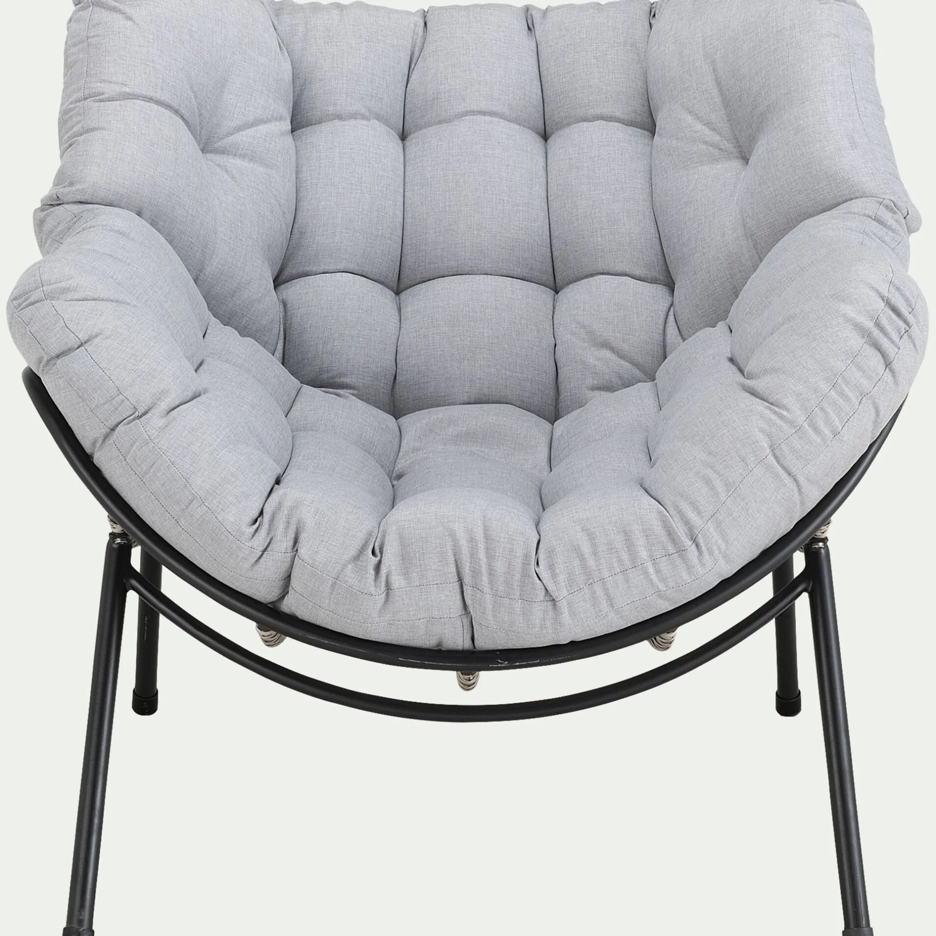 Coup de coeur pour ce fauteuil relax qui vous invite à la détente, voire à la paresse. Vous vous sentirez comme sur un nuage, lové dans ses coussins matelassés ultra moelleux au doux coloris gris. Sa forme enveloppante est rassurante et particulièrement confortable. Vous vous laisserez aller avec sérénité à des sensations réconfortantes et empreintes de douceur. Il peut venir compléter l’aménagement de votre jardin ou votre salon.