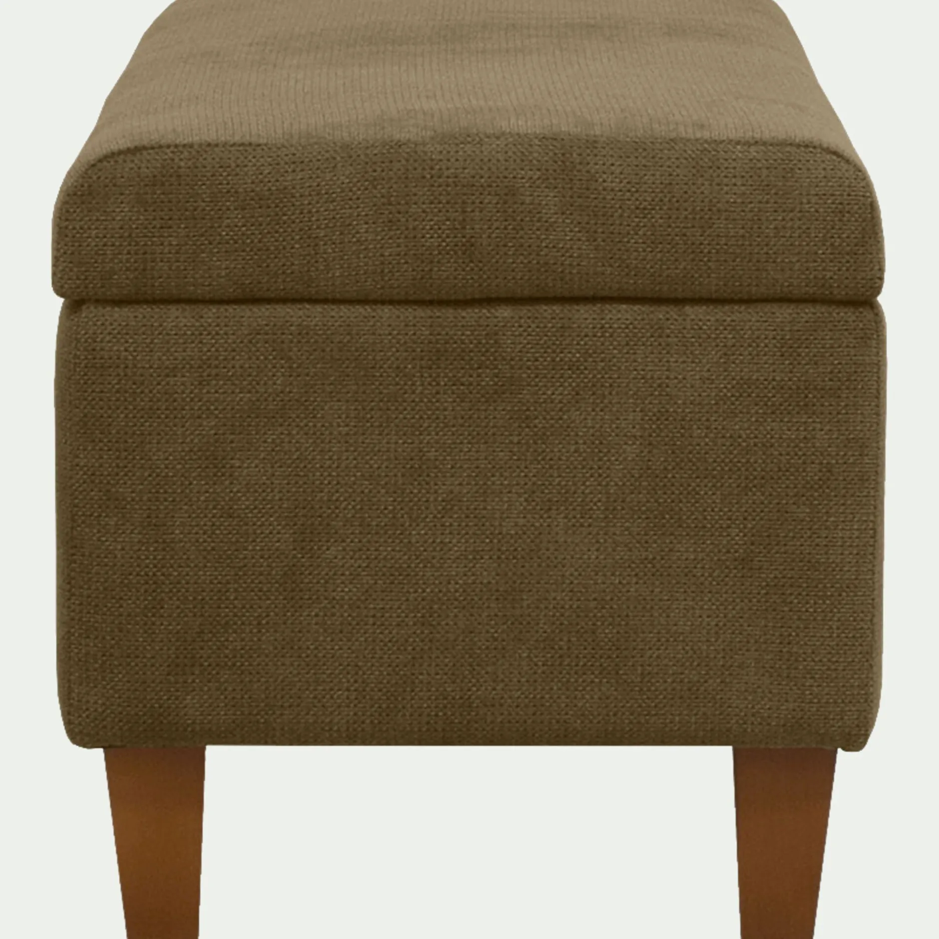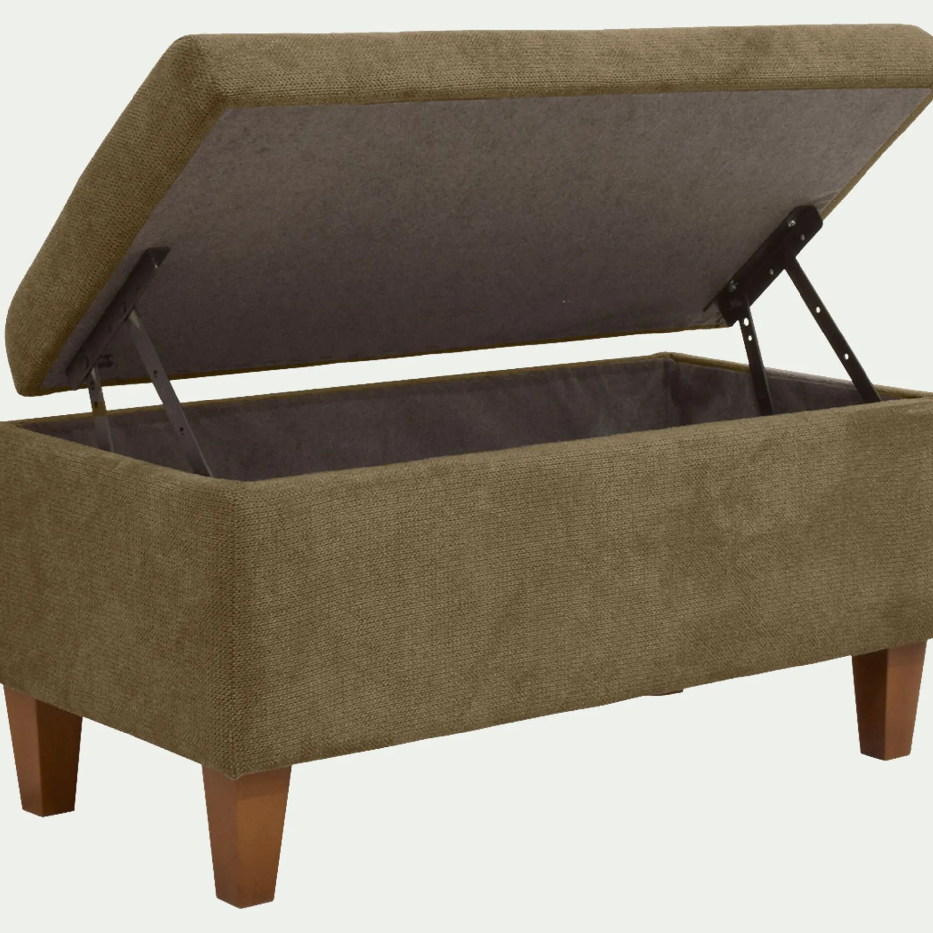 Un joli pouf en tissu pour compléter votre canapé et ajouter du confort à votre salon. Elégant et utile, il dispose d’un coffre de rangement d’une belle capacité. Un atout indéniable pour stocker vos coussins et plaids par exemple et les garder accessibles facilement. Ce pouf confère une assise confortable et vous permet de passer des moments de partage chaleureux avec vos convives dans votre salon. Un pouf confectionné en France, dans des ateliers proches de Bourges, par des artisans passionnés au savoir-faire unique et traditionnel. En vert cèdre, il donnera une touche de charme et de cocooning pour votre maison.