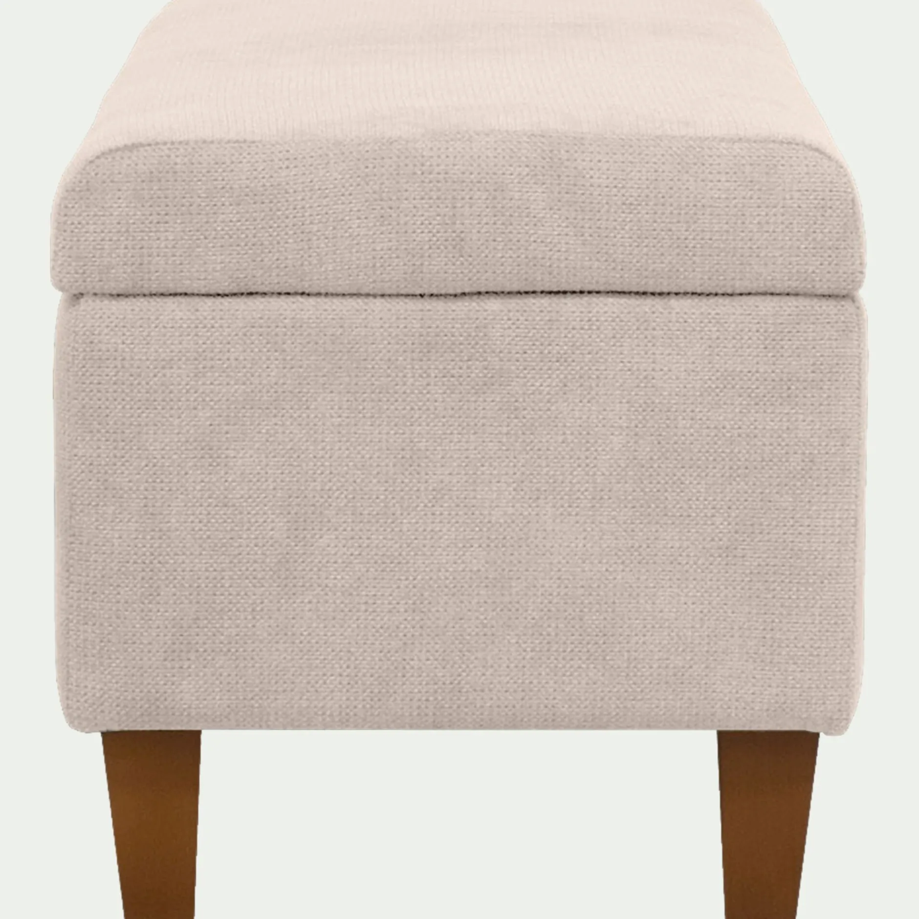 Un joli pouf en tissu pour compléter votre canapé et ajouter du confort à votre salon. Elégant et utile, il dispose d’un coffre de rangement d’une belle capacité. Un atout indéniable pour stocker vos coussins et plaids par exemple et les garder accessibles facilement. Ce pouf confère une assise confortable et vous permet de passer des moments de partage chaleureux avec vos convives dans votre salon. Un pouf confectionné en France, dans des ateliers proches de Bourges, par des artisans passionnés au savoir-faire unique et traditionnel. En beige, il donnera une touche de charme et de cocooning pour votre maison.