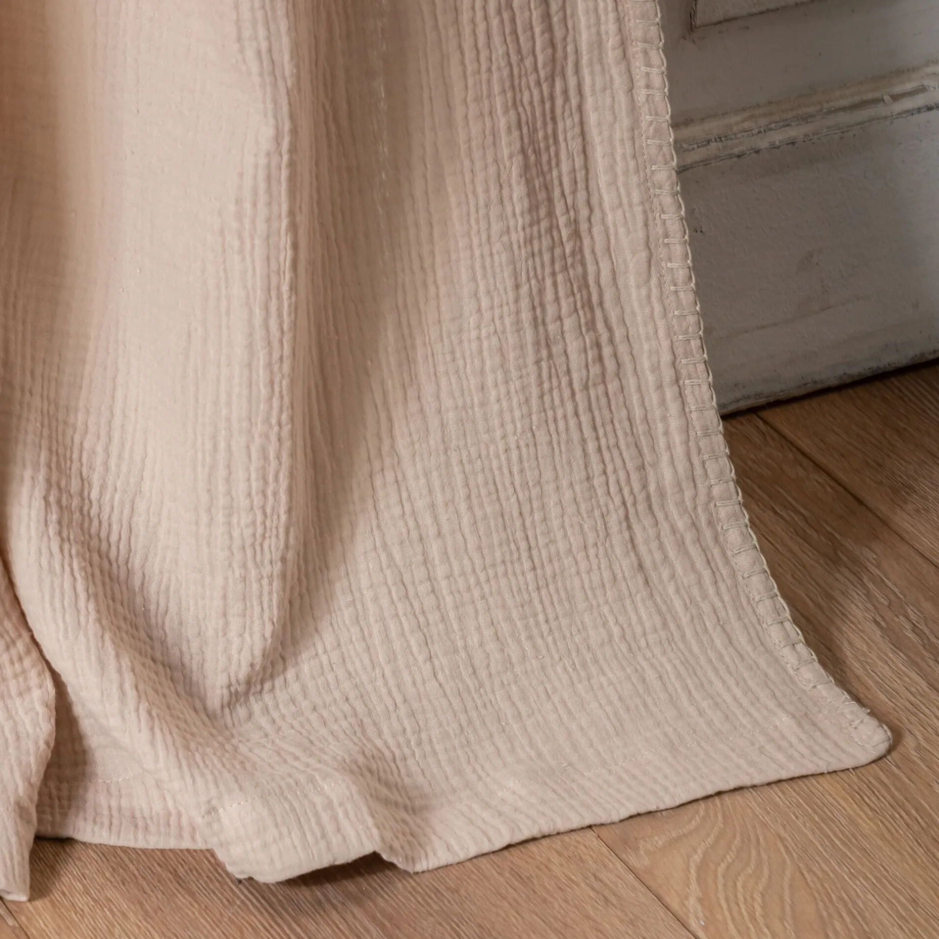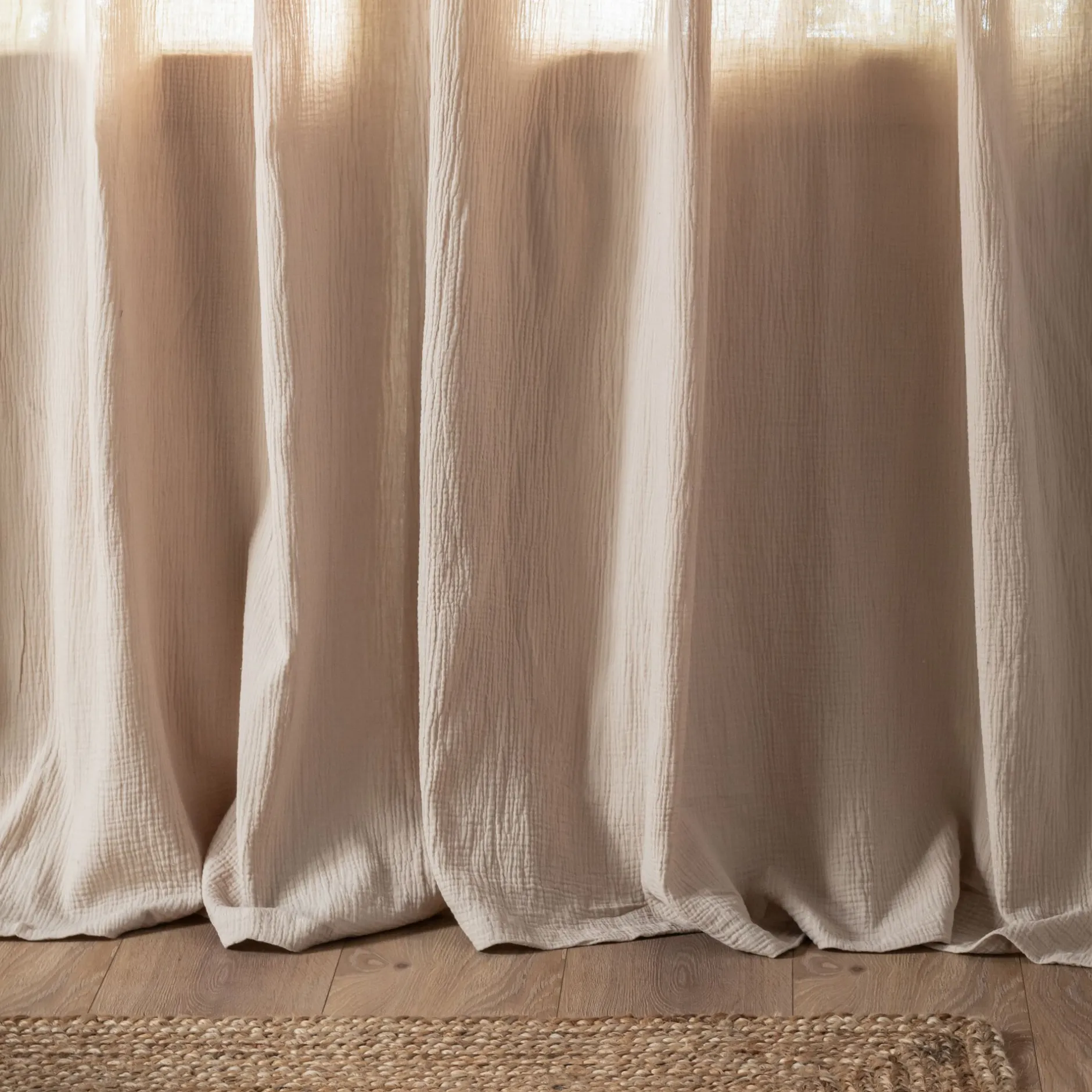 Réchauffer tendrement votre intérieur grâce au rideau beige Tessaly. Ce rideau à nouettes est un véritable concentré de douceur, autant par sa texture que par son design. Ce rideau de 130×250 cm est confectionné en double gaze de coton. Les deux couches de coton pur forment ensemble une étoffe vaporeuse à l’aspect gaufré. Sa légèreté et sa délicatesse sont renforcées par ses huit nouettes en coton ainsi que sa couture en point de cheval. Ces finitions authentiques donnent du cachet à ce rideau en gaze de coton. Un linge de maison de caractère qui vient habiller vos fenêtres et sublimer l’espace.