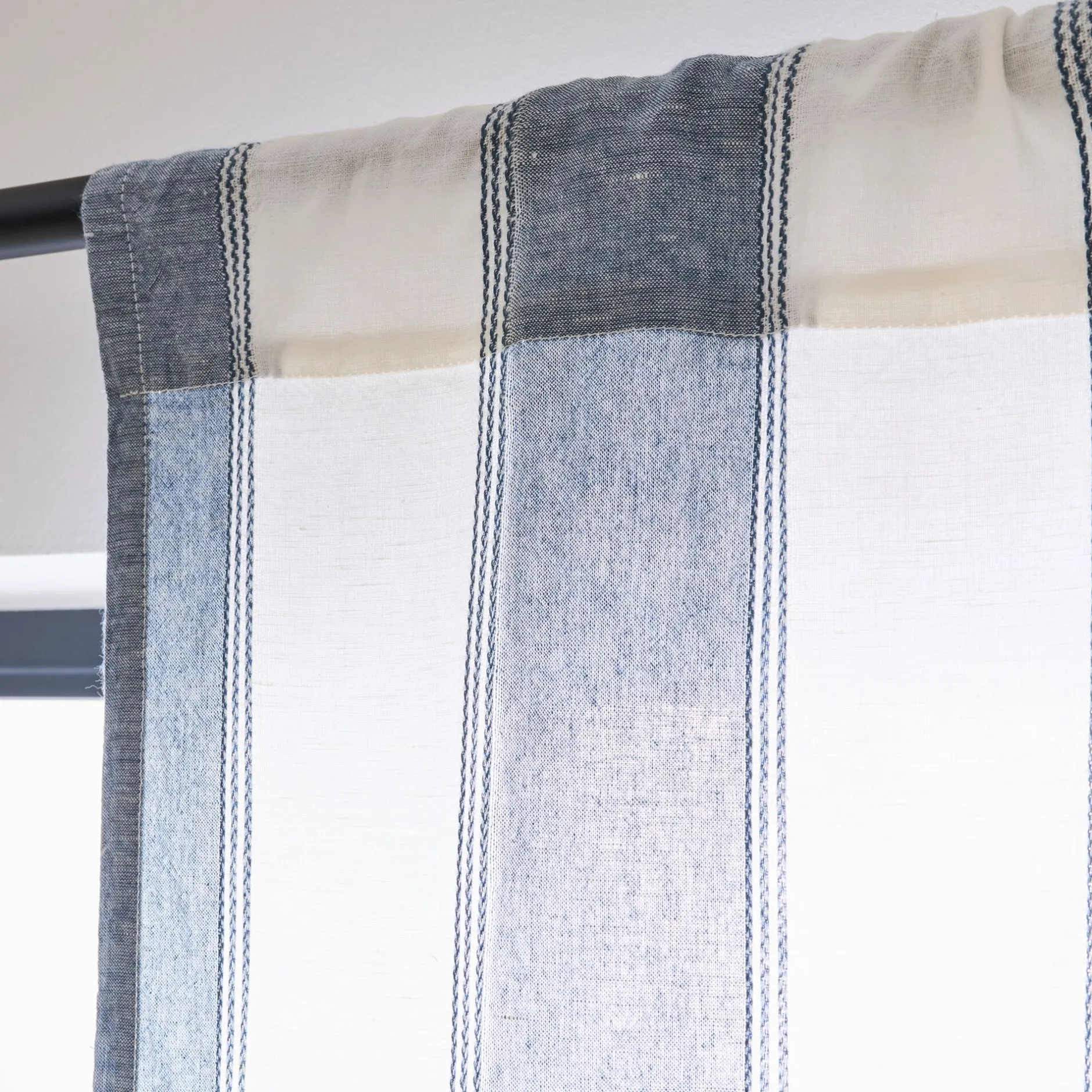 Inssufflez un vent design à votre maison en toute discrétion et délicatesse avec ces rideaux à rayures bleu et blanc. Ils sont le parfait accord entre élégance et durabilité. En lin et coton de haute qualité, ils sont travaillés avec soin au Portugal et représentent un savoir-faire européen. Ils vous permettront d’embellir votre maison avec charme et authenticité. Leurs matiériaux naturels et leur doux coloris créent une atmosphère lumineuse et apaisante dans votre intérieur. En 140×250 cm, leur doux tissu laisse passer la lumière tout en préservant votre intimité pour une ambiance tamisée. Idéaux pour habiller vos fenêtres avec subtilité, ils sublimeront une décoration naturelle ou moderne.