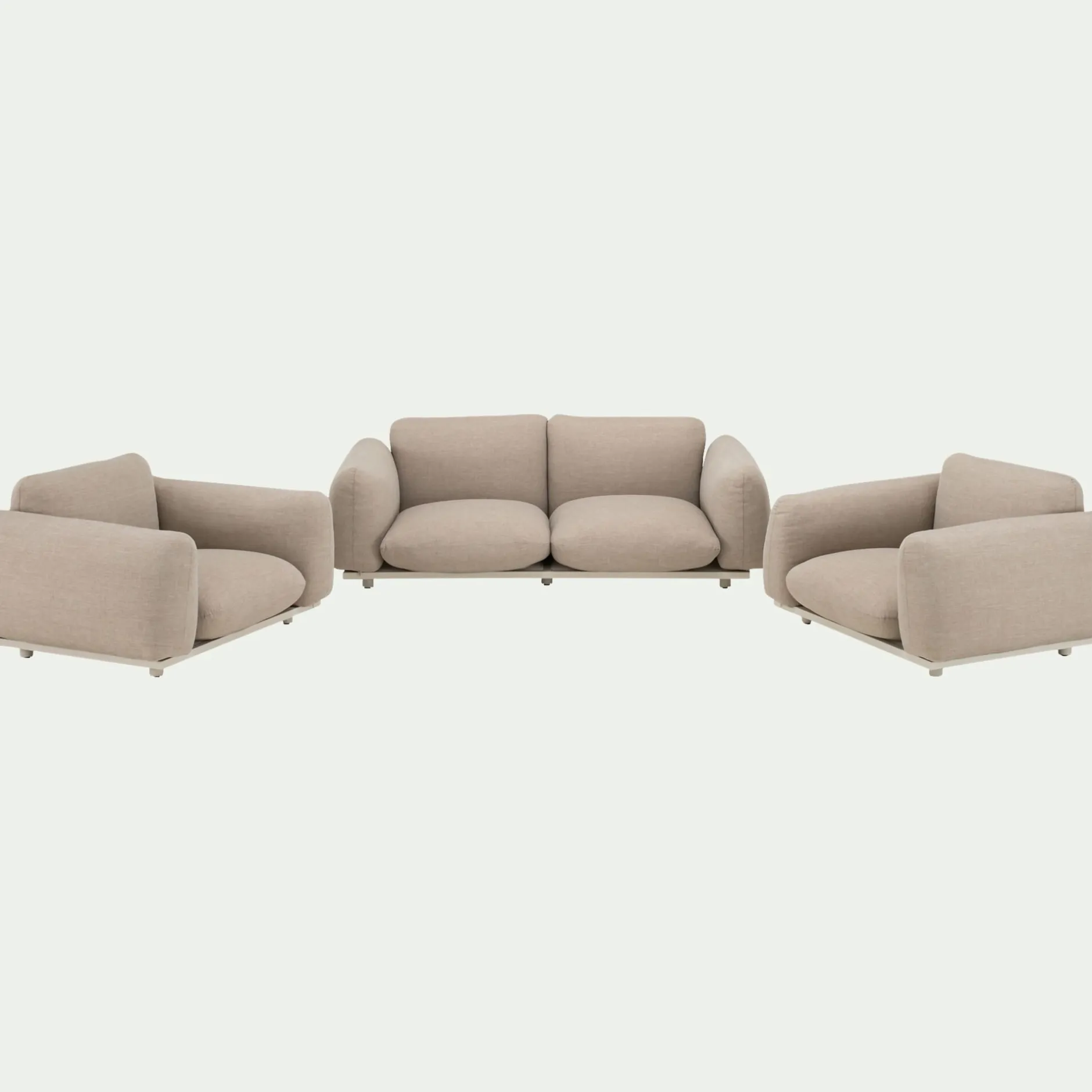Avec le salon de jardin Monte Cristo, chaque moment passé dehors devient une invitation à la détente. Composé de deux fauteuils et d’un canapé 2 places, il séduit par ses assises profondes et ses coussins généreusement rembourrés. Son tissu premium, doux au toucher, adopte une teinte beige sable lumineuse et intemporelle. Conçu pour résister aux UV et aux intempéries, il allie confort et praticité, avec des coussins entièrement déhoussables pour un entretien facile. Une harmonie parfaite entre élégance et bien-être, idéale pour prolonger les douces soirées d’été.