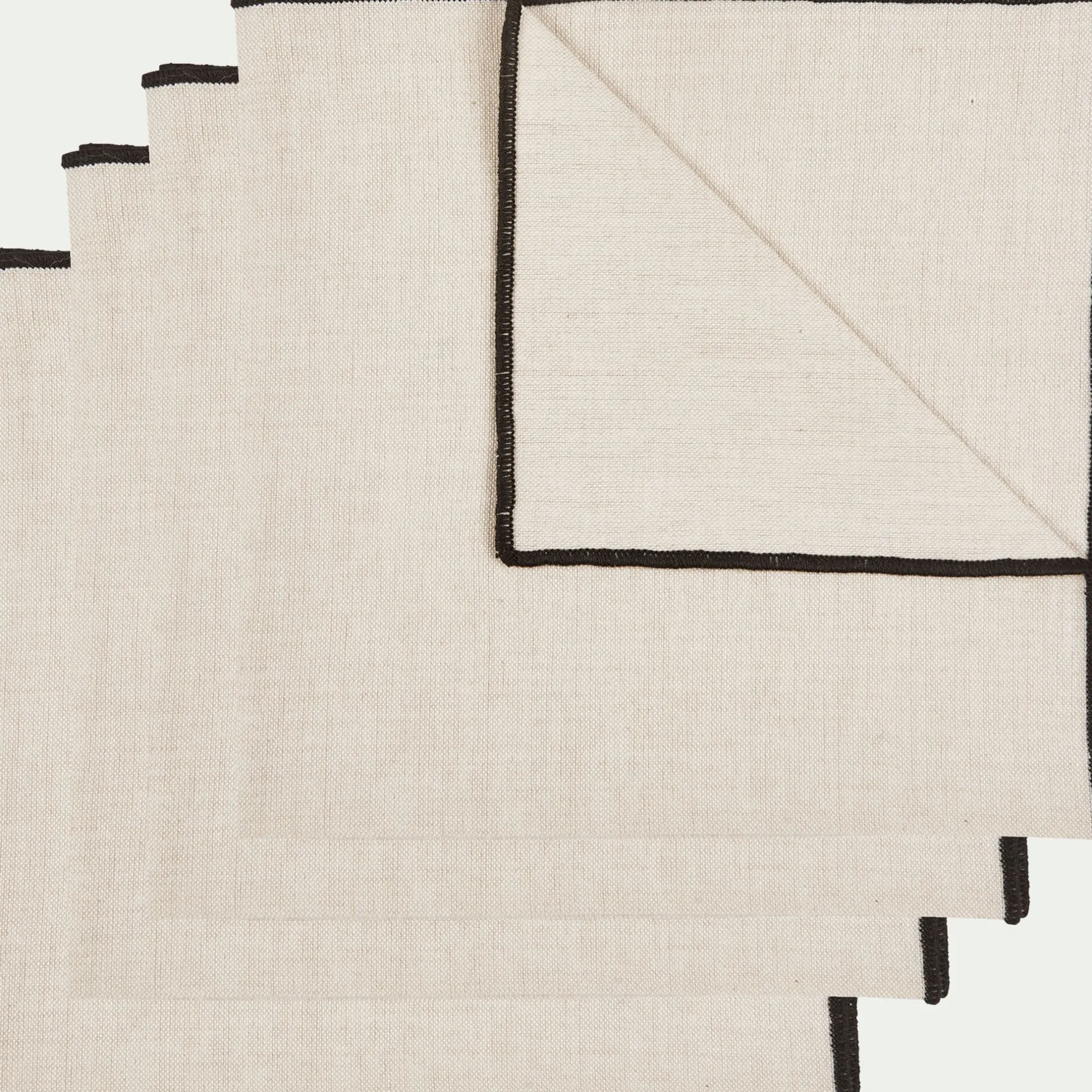 Dimanche en famille ou soirée entre amis, les occasions sont nombreuses pour recevoir du monde à la maison. Pour les accueillir, rien de tel qu’une jolie table dressée. Après avoir choisi la vaisselle, ajoutez la touche finale avec des serviettes en tissu. Les serviettes de table Linia sont confectionnées en coton. Délicatement brodées pour former un liseré noir, ces serviettes sont aussi décoratives que fonctionnelles. Dans l’assiette, dans le verre ou à coté des couverts, la serviette en coton est toujours du plus bel effet, qu’elle soit simplement posée ou pliée dans une forme originale.