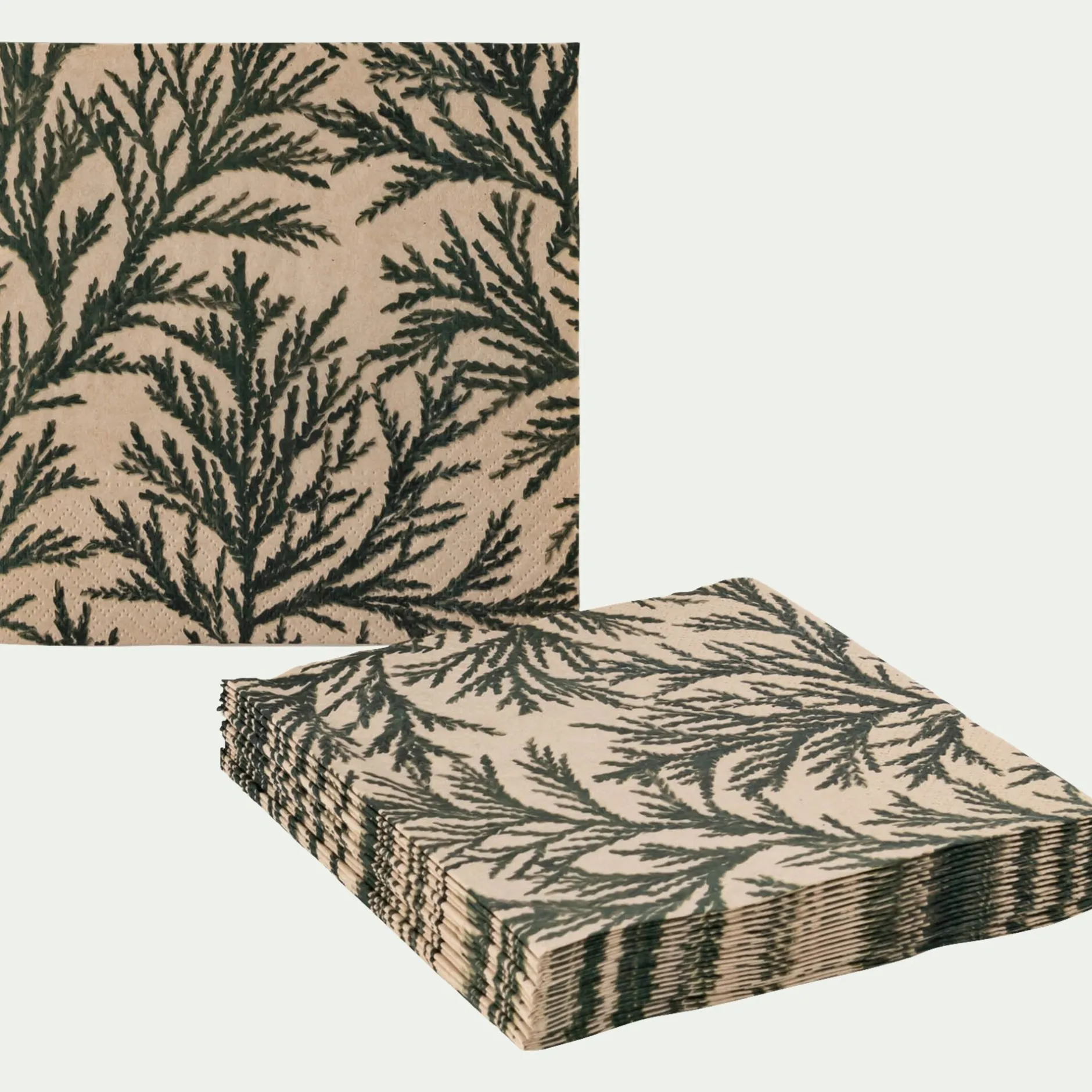 Ces serviettes en papier, d’un beige doux parsemé de motifs de cyprès, ajoutent une touche décorative raffinée à vos repas. Le coloris vert des cyprès crée une ambiance chaleureuse et naturelle, parfaite pour une table élégante et soignée. Un choix idéal pour sublimer vos repas avec une note discrète mais stylée.