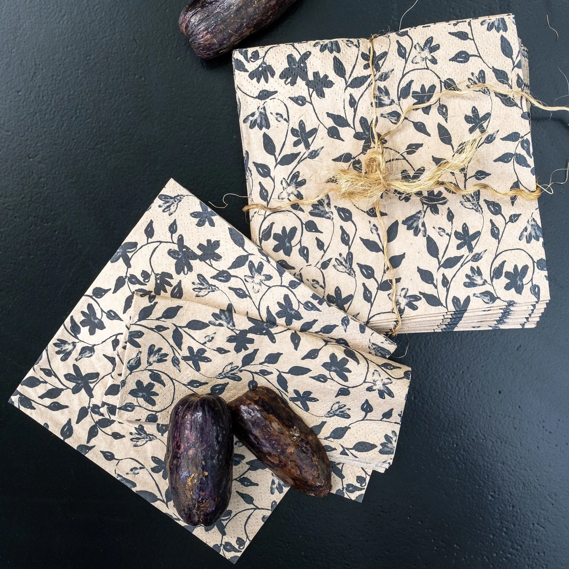 D’un beige apaisant, ces serviettes en papier arborent un motif floral bleu. Elles apportent une élégante touche naturelle à votre décoration de table, parfaites pour des repas alliant simplicité et raffinement. Idéales pour créer une ambiance chaleureuse sans sacrifier le style, elles accompagnent avec charme vos assiettes et vos couverts.