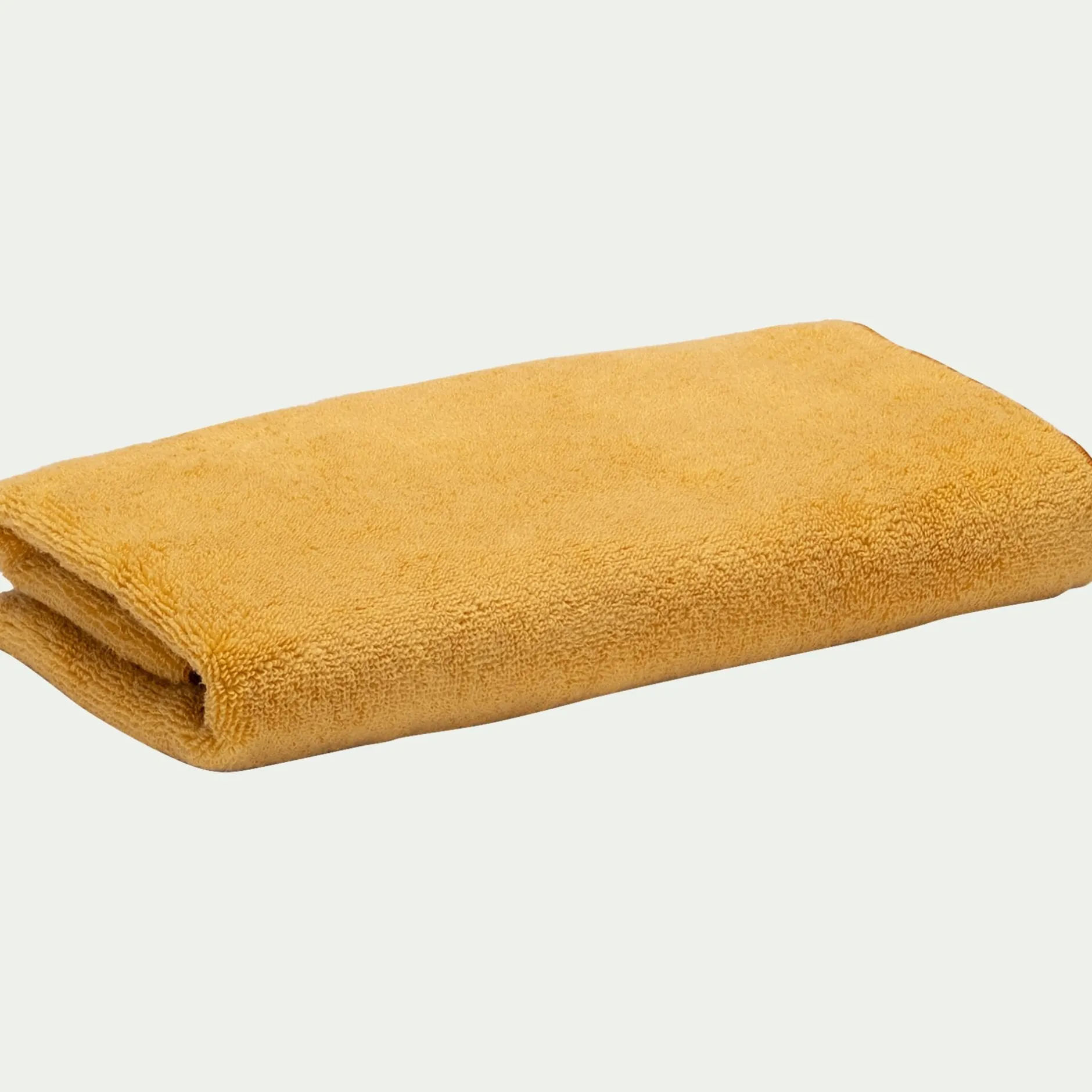 Come est une serviette de toilette de 50×100 cm. Confectionnée en coton Oeko-Tex, elle apporte douceur et résistance. De taille moyenne, cette serviette est idéale pour se sécher les mains, le visage ou bien les cheveux. Aussi pensé pour décorer, ce linge de toilette arbore une finition en point de bourdon qui apporte du contraste. Elle se distingue sur notre coloris jaune blé, nuance solaire et chaleureuse.