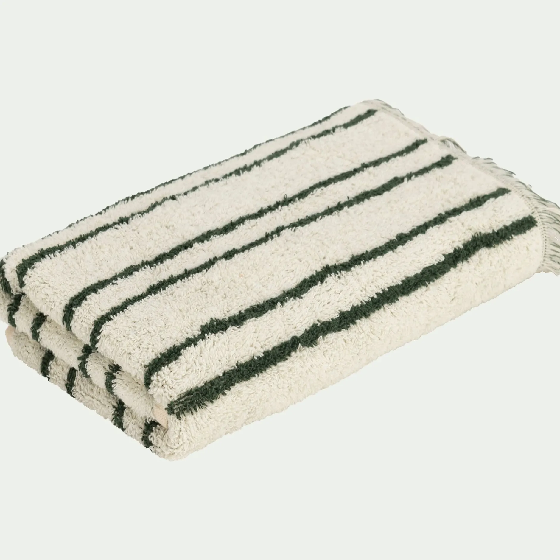 Plongez dans la collection de linge de toilette Listra, une gamme raffinée conçue au Portugal et principalement composée de coton recyclé certifié Oeko-Tex. Nous vous présentons ici la serviette de toilette, pensée pour apporter une douceur incomparable à votre quotidien. Grâce à son grammage élevé, cette serviette offre une excellente absorption, assurant un séchage rapide et efficace après chaque douche ou bain. Arborant une élégante teinte verte avec des rayures blanches, elle s’intégrera parfaitement dans votre salle de bain. Laissez-vous séduire par le reste de la collection pour composer un ensemble harmonieux de linge de toilette.