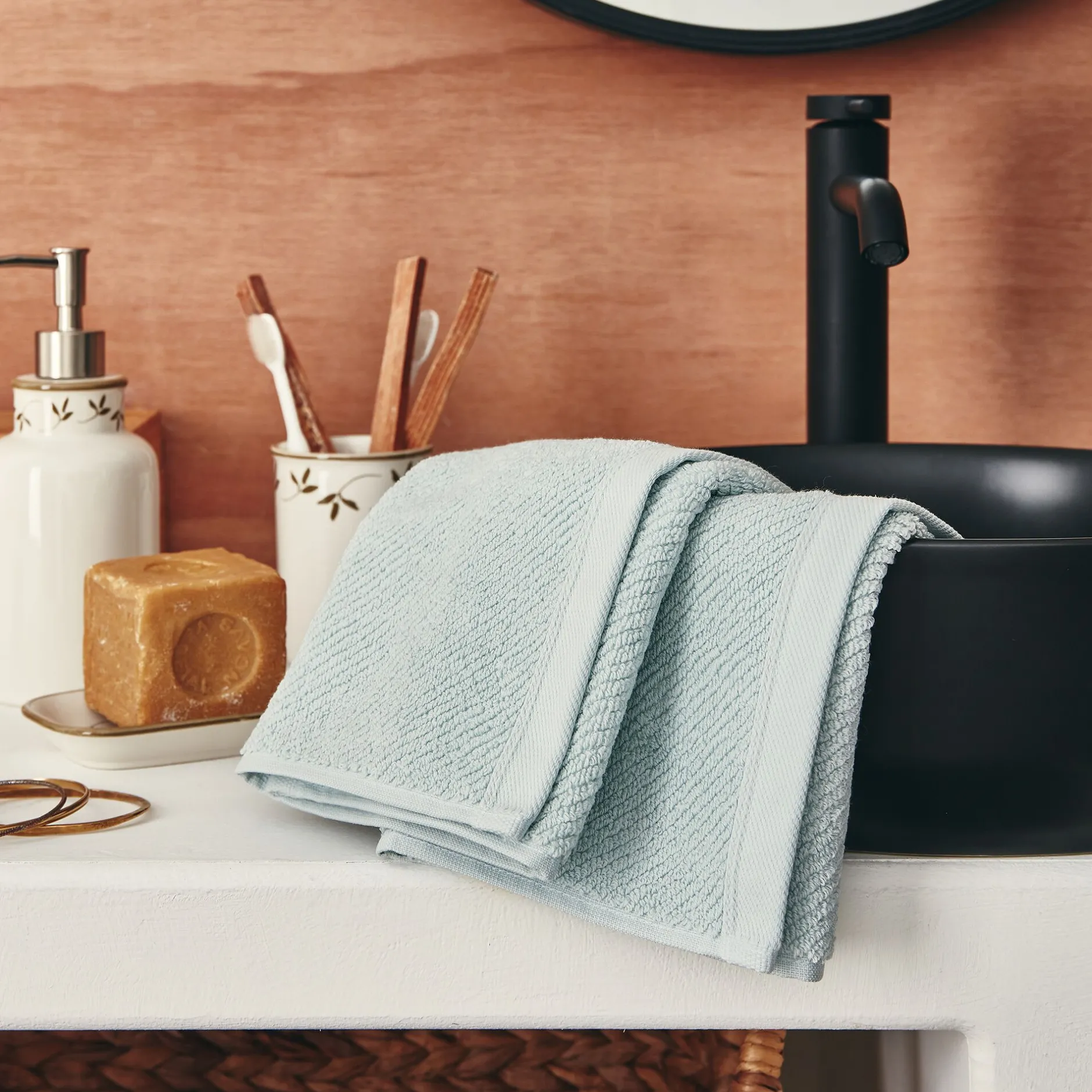 Serviette Invité*alinea Lot de 2 serviettes invités en bouclettes de coton bio – 30x50cm Bleu