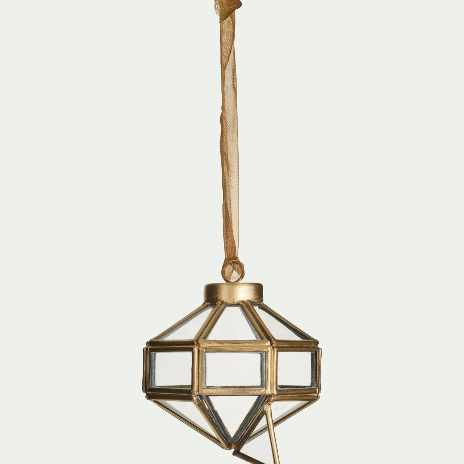 Avec sa forme de diamant, la suspension de Noël Epiva apporte une touche glamour au sapin. Ses lignes géométriques, soulignées par un métal doré, apportent de l’élégance à votre décoration. Les surfaces en verre laissent subtilement transparaître la lumière, créant un jeu de reflets qui illuminent l’intérieur de cette boule précieuse. Chic et éclatante, cette suspension en verre est idéale pour une décoration de Noël qui brille de mille feux !