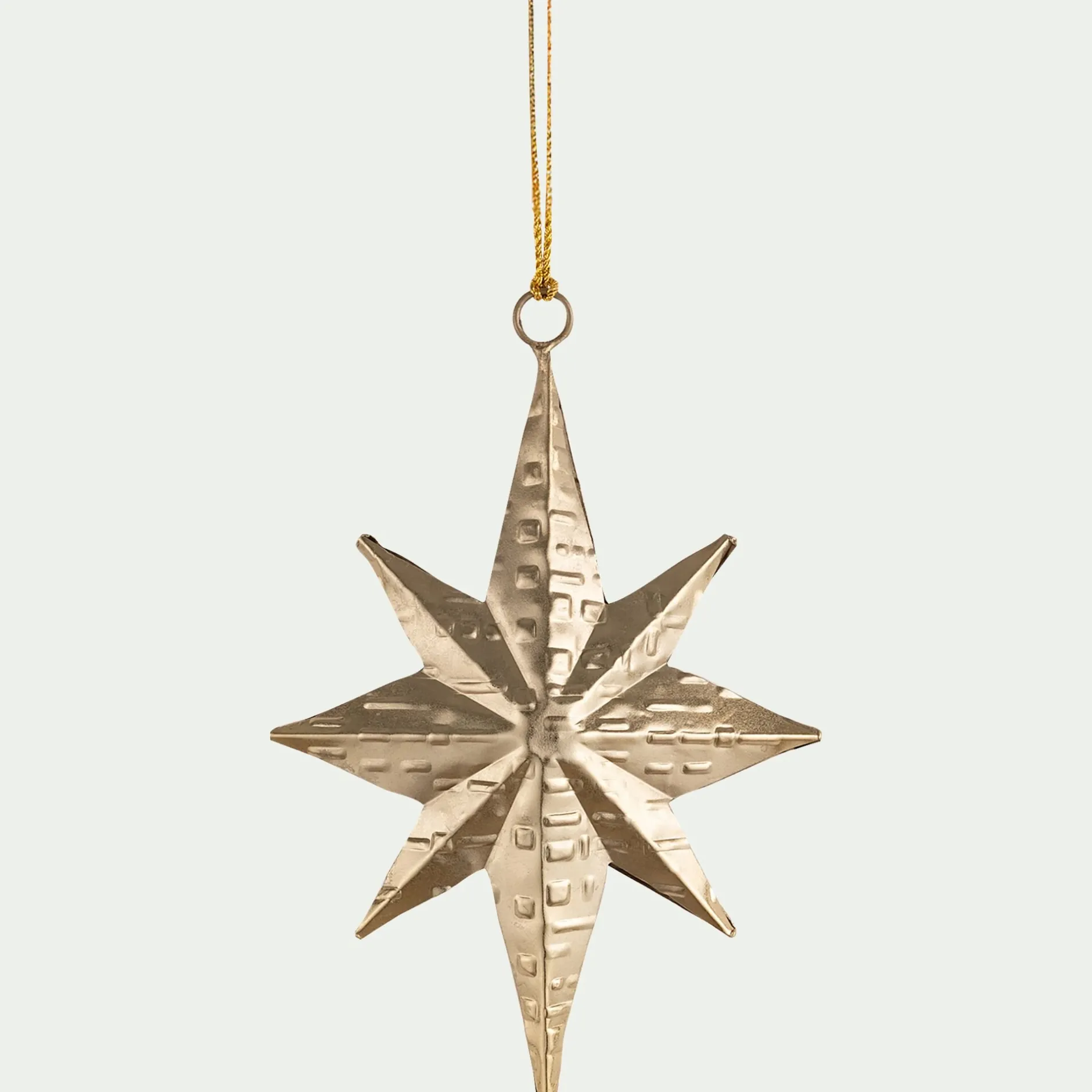 Réinventez le classique ! Cette grande étoile à suspendre (H17cm) offre une version chic et sophistiquée de l’ornement de Noël traditionnel. Sa teinte dorée apporte une chaleur instantanée et une touche précieuse à votre décoration. Elle se démarque sur le sapin, créant un point focal élégant. C’est l’ornement parfait pour ceux qui recherchent l’alliance d’un design intemporel et d’une taille imposante.