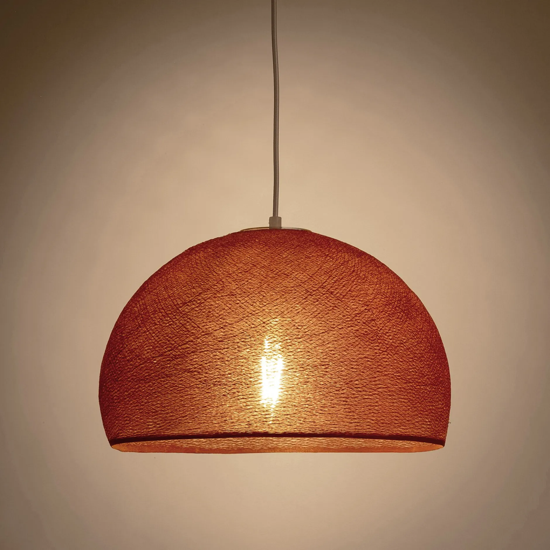 Pour l’éclairage principal de votre pièce, optez pour la suspension électrifiée Luna. Cette suspension arbore une forme de coupole, réalisée à partir de fils de polyester. Ces derniers sont tissés pour offrir cette forme parfaitement ronde et cette belle transparence. Dans notre coloris cuivre tanné tirant sur le rouge, cette suspension en tissu réchauffe une décoration neutre. Son design, sa texture et sa nuance chaleureuse participent à un style à la fois bohème et sophistiqué. Simple et élégant, cet abat-jour se distingue par sa teinte réconfortante.
