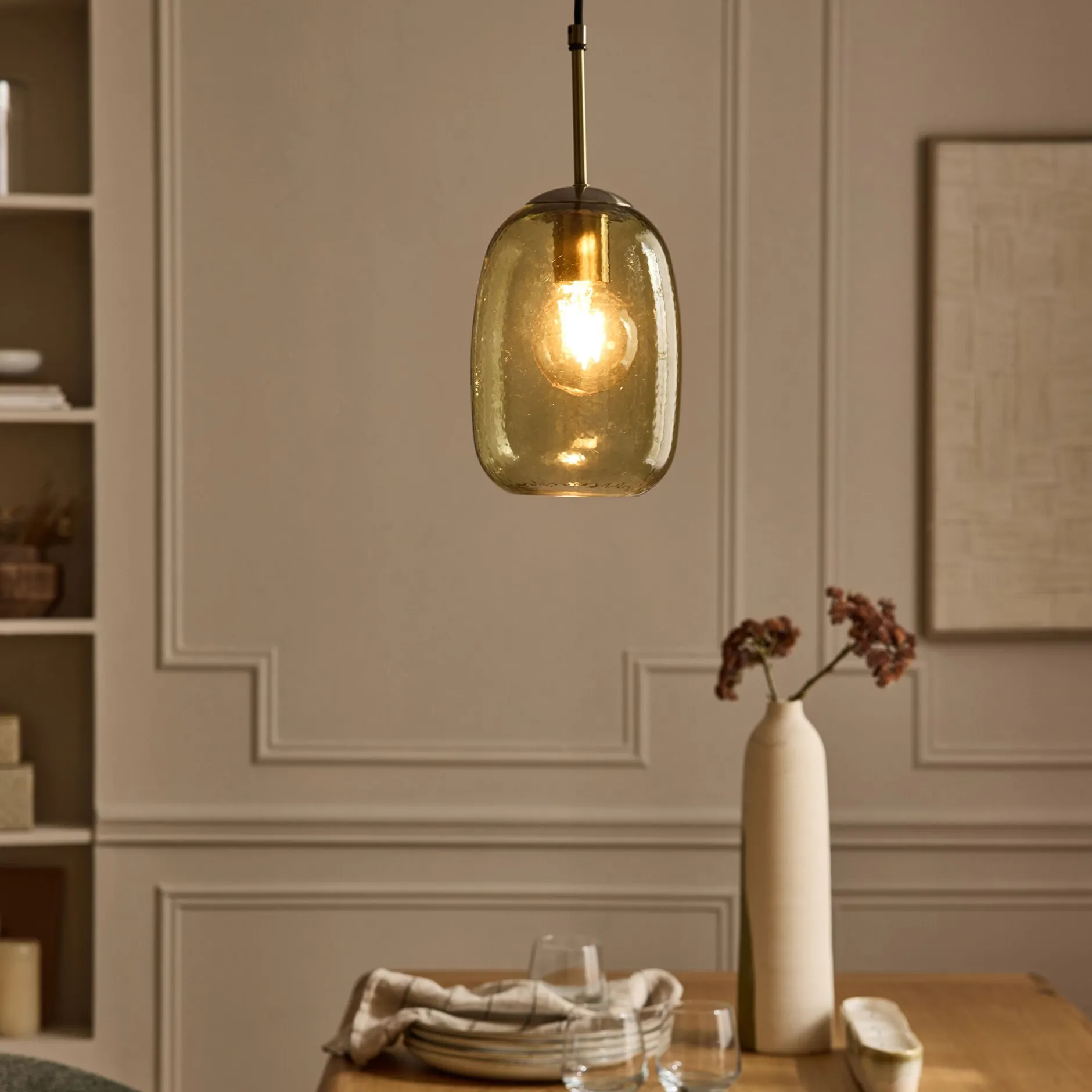 La suspension électrifiée Tassino est l’ajout parfait pour une touche d’élégance moderne dans n’importe quelle pièce. La suspension en verre se distingue par un coloris vert fumé, ainsi qu’une surface bosselée qui offre de la texture. Ces détails créent un effet flou, idéal pour une ambiance cosy et élégante. Les finitions en fer ajoutent une subtile note industrielle, complétant parfaitement le design raffiné de cette suspension. Idéale pour le salon, la salle à manger ou la chambre, elle diffuse une lumière douce et apaisante, transformant votre espace en un lieu accueillant.