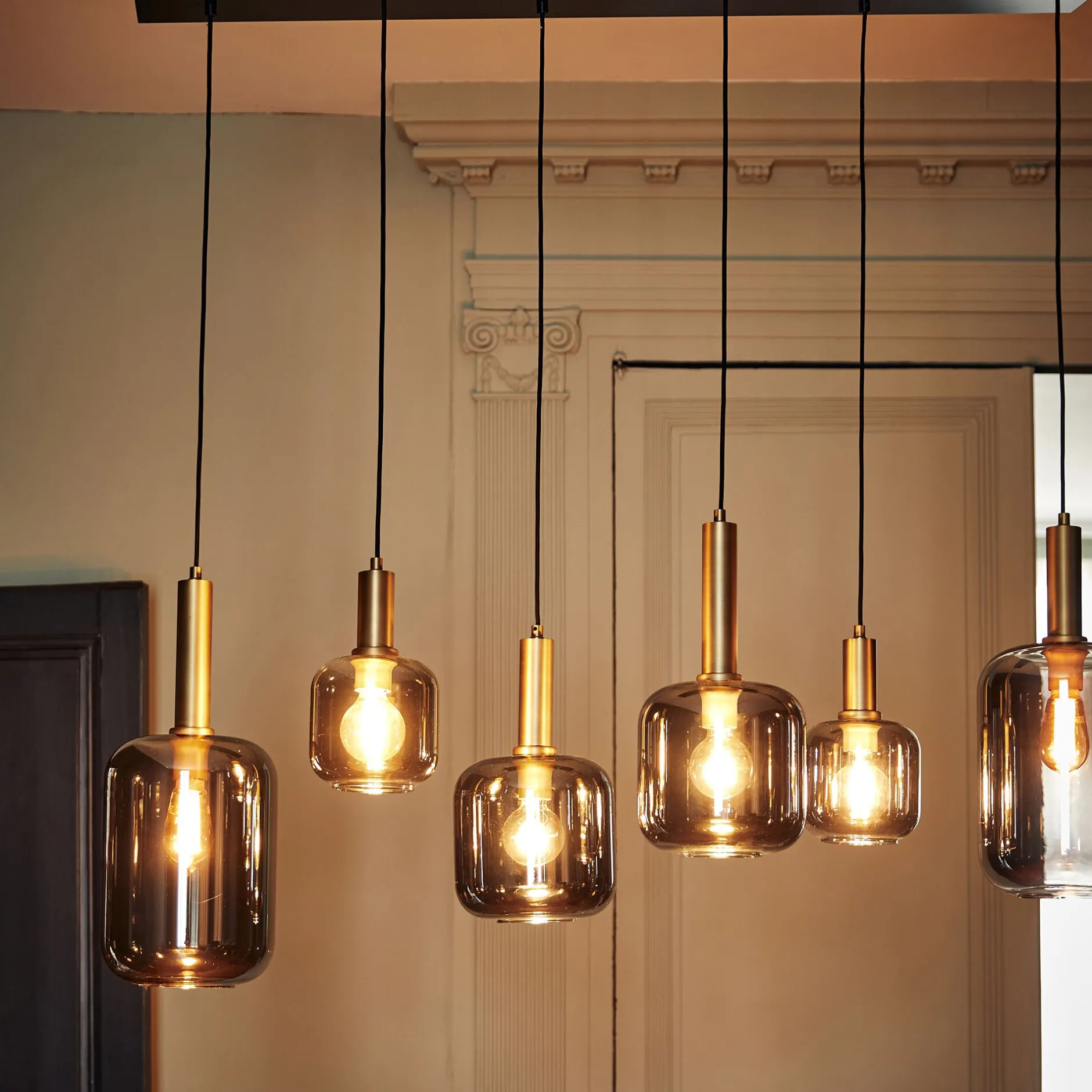 Cette suspension apportera une touche d’élégance et d’authenticité à votre intérieur. Ce luminaire est muni de six globes suspendus avec style à la plaque de montage, grâce à des cordons en tissu. Optez pour un format d’ampoule différent, cela apportera du dynamisme à cette suspension. Pour profiter pleinement de la magie, nous vous recommandons des ampoules filaments.
