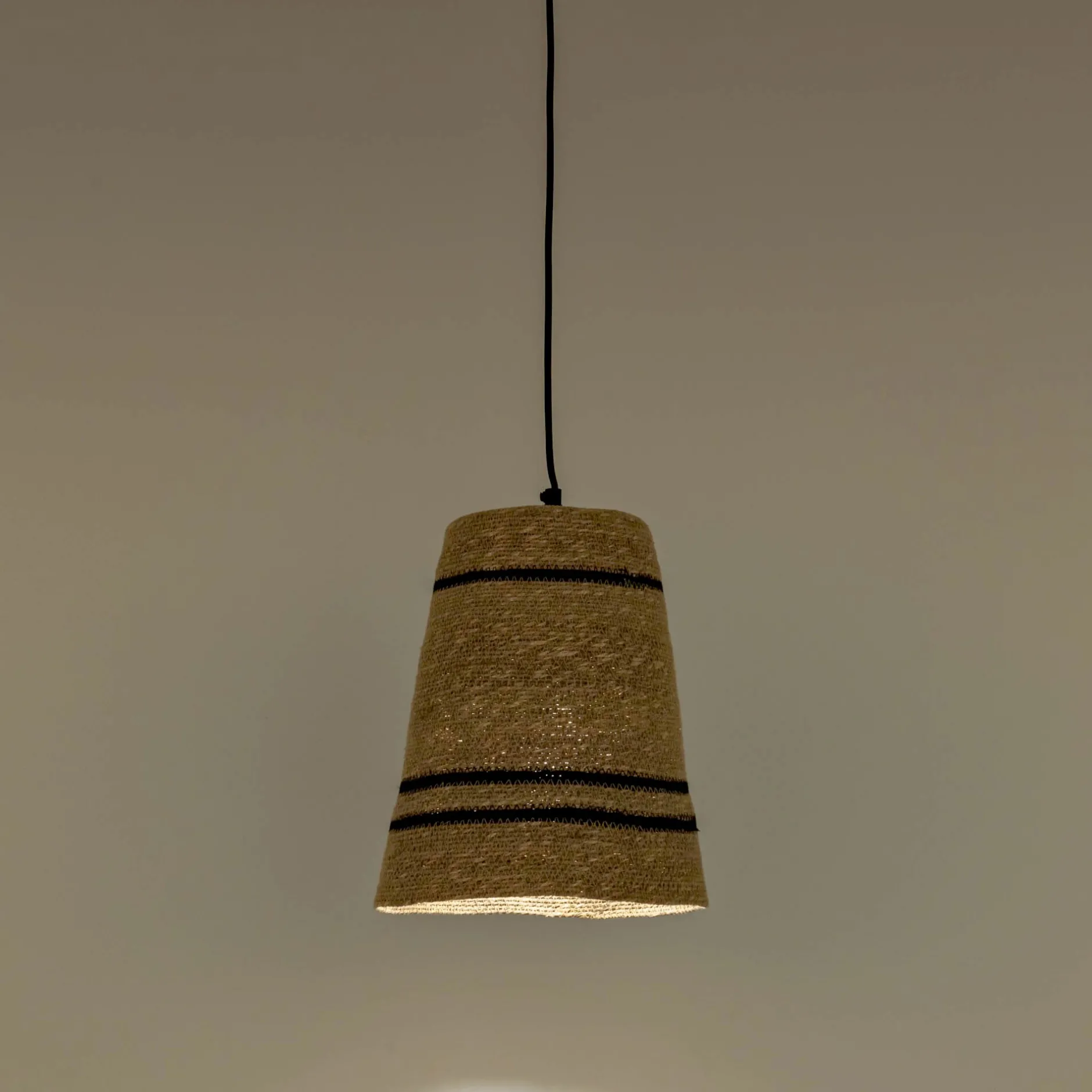 Découvrez cette jolie suspension en jonc de mer habilement tressée. C’est un bel élément de déco qui saura trouver sa place chez vous. Son coloris naturel sublimé par un détail noir, fait de luminaire tout en longueur une pièce unique remplie de charme. Cette suspension électrifiée est idéale pour votre intérieur. Vous pouvez l’associer avec une autre suspension naturelle pour créer un bel ensemble. Souple, chaque abat-jour présente un galbe particulier qui peut être modelé selon vos envies.